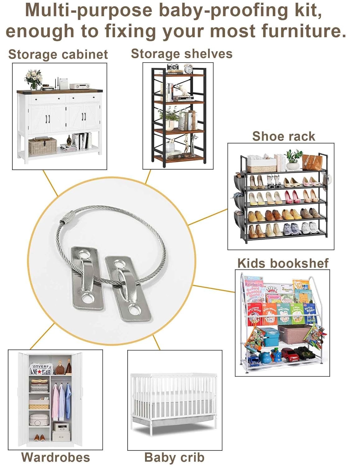 6 Sets Anti Tip Furniture Anchors for Baby Proofing, Earthquake Straps, Furnitur