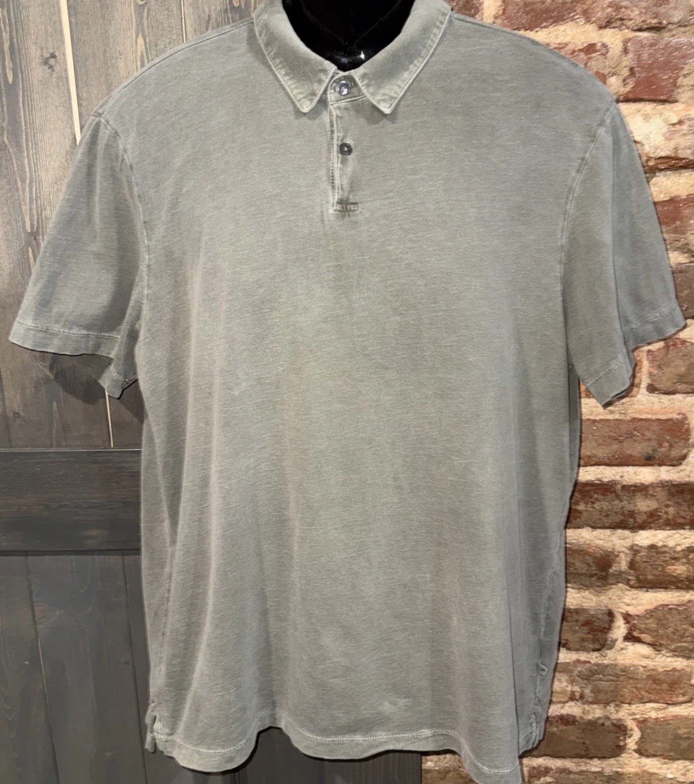 как выглядит JAMES PERSE Sueded Jersey Polo Shirt Mens 3 MSX3337 Muted Green EUC Preppy фото