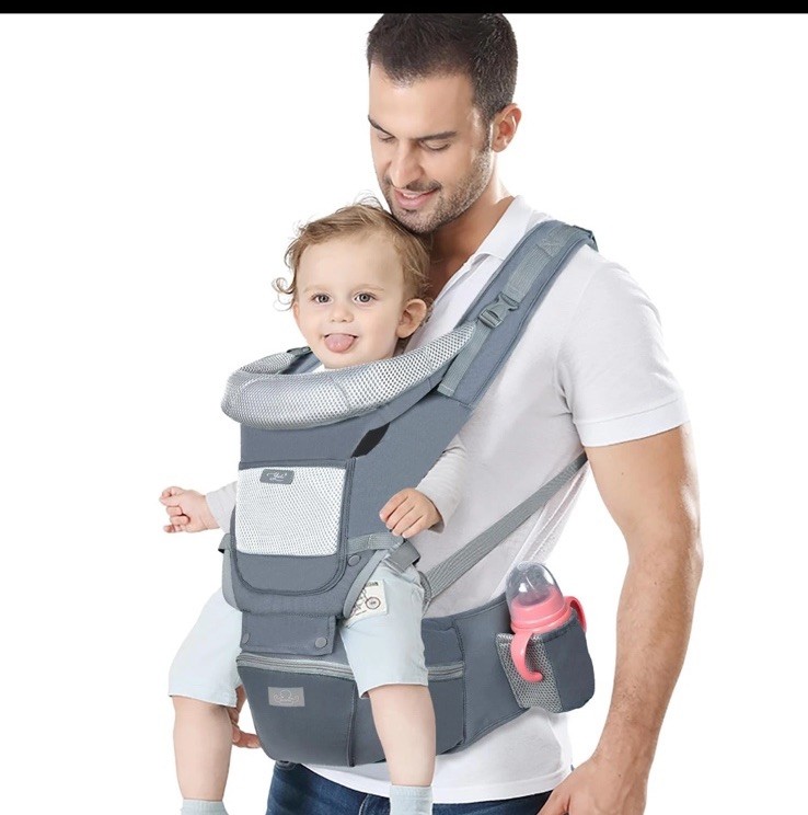 Baby Carrier Ergonomic Infant with Hip Seat Kangaroo Bag In Gray