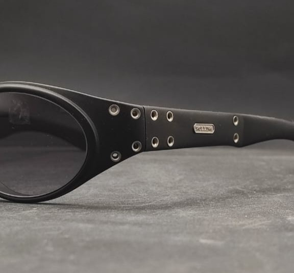 Vintage 90s Rolling Oval Sunglasses Black France Rivet Frame