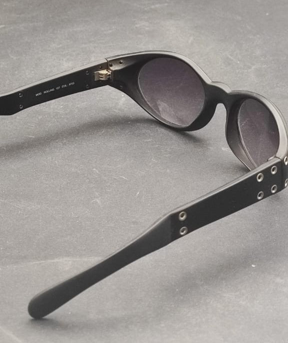 как выглядит Vintage 90s Rolling Oval Sunglasses Black France Rivet Frame фото