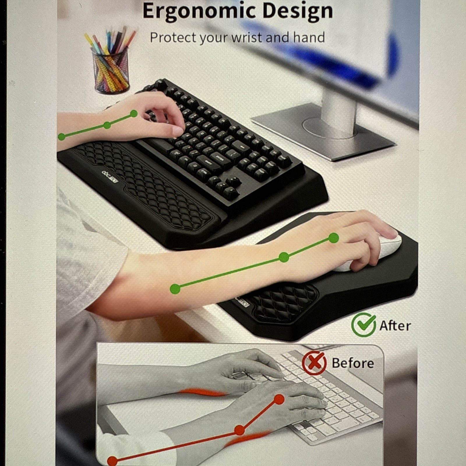 как выглядит 3-in-1 Ergonomic Keyboard Stand with Wrist Rest Mouse Pad 17 x 11 Black фото