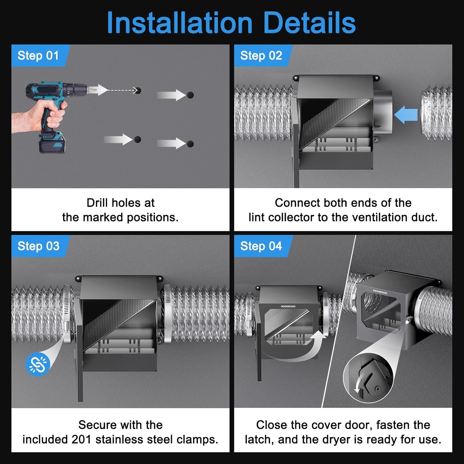 Upgrade Indoor Dryer Duct Lint Trap Kit, Dryer Lint Catcher with Stainless Steel