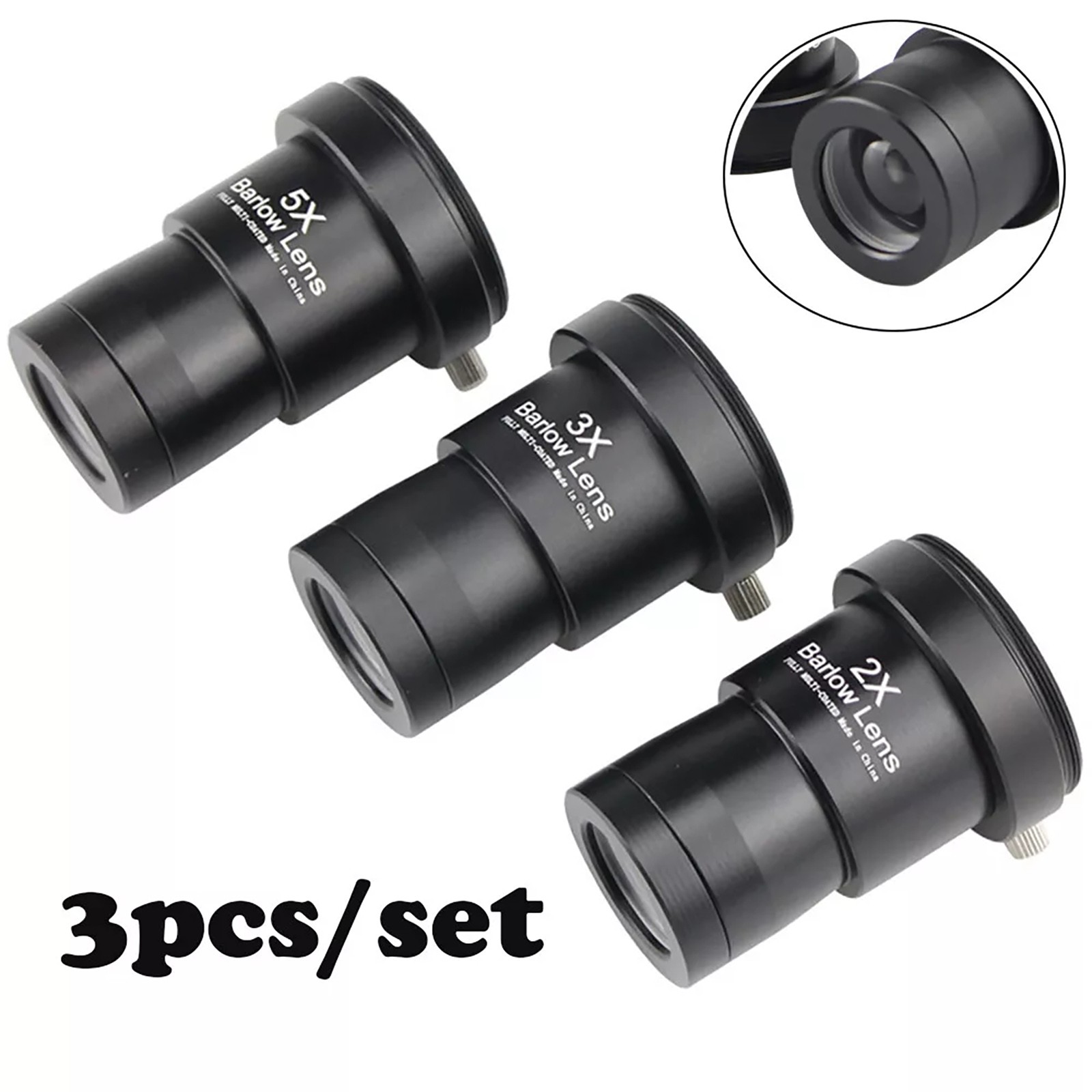 3Pcs Black 2X 3X 5X Eyepiece Lens 1.25 inch Astronomical Telescope Barlow Lens