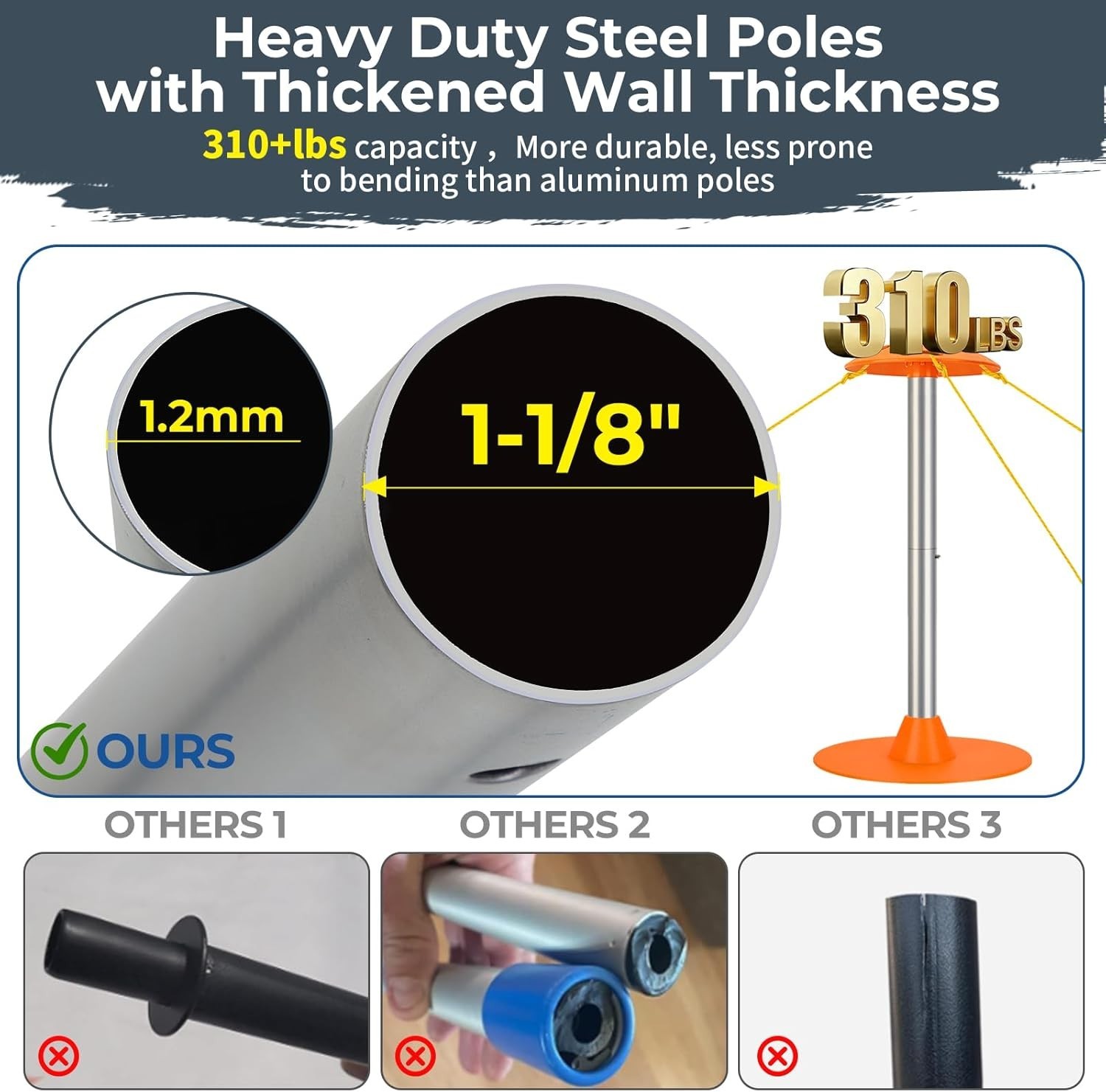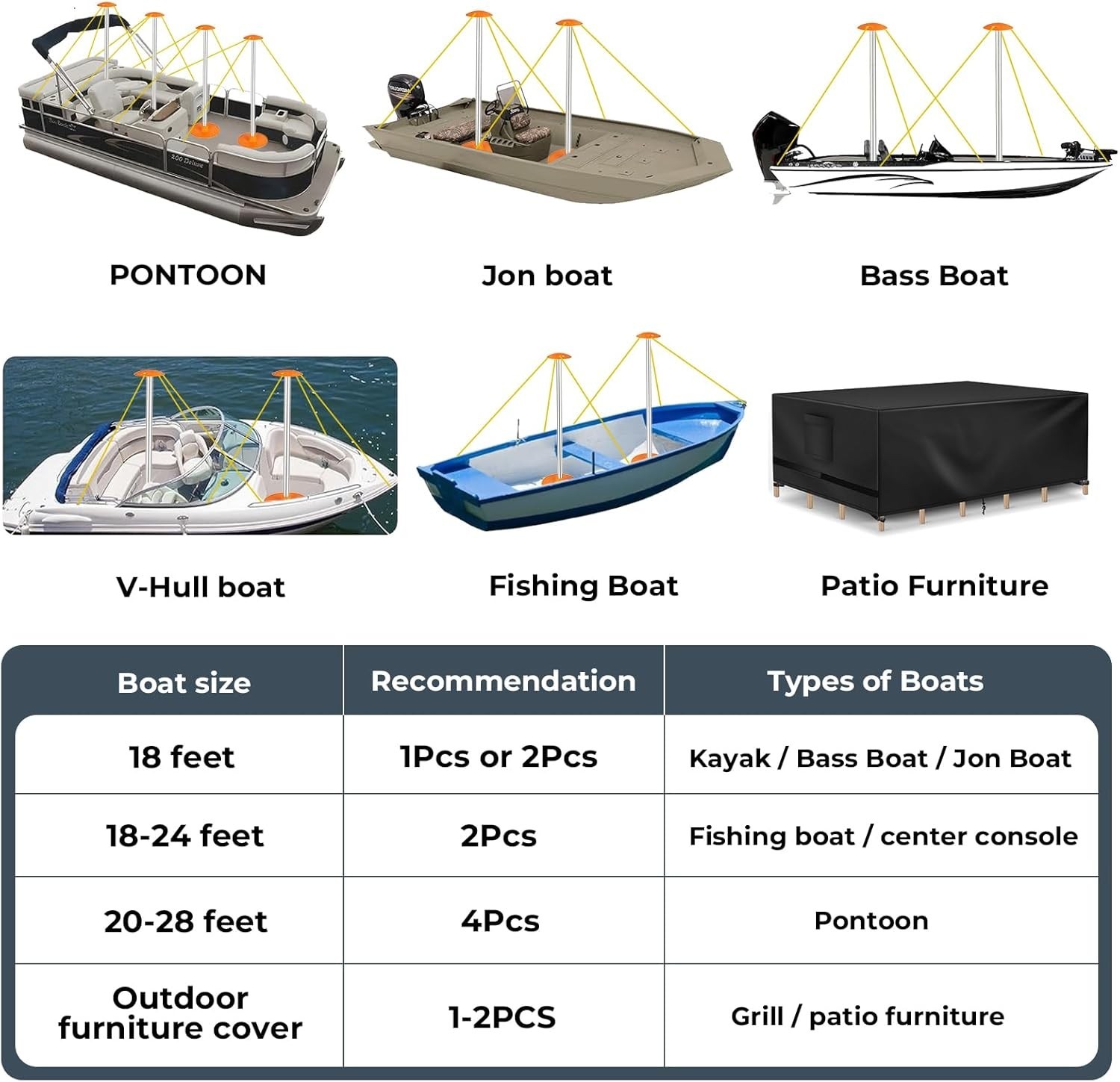 Boat Cover Support Pole Systems with Anti-UV PE Ropes 9 ABS Base, Highly S...