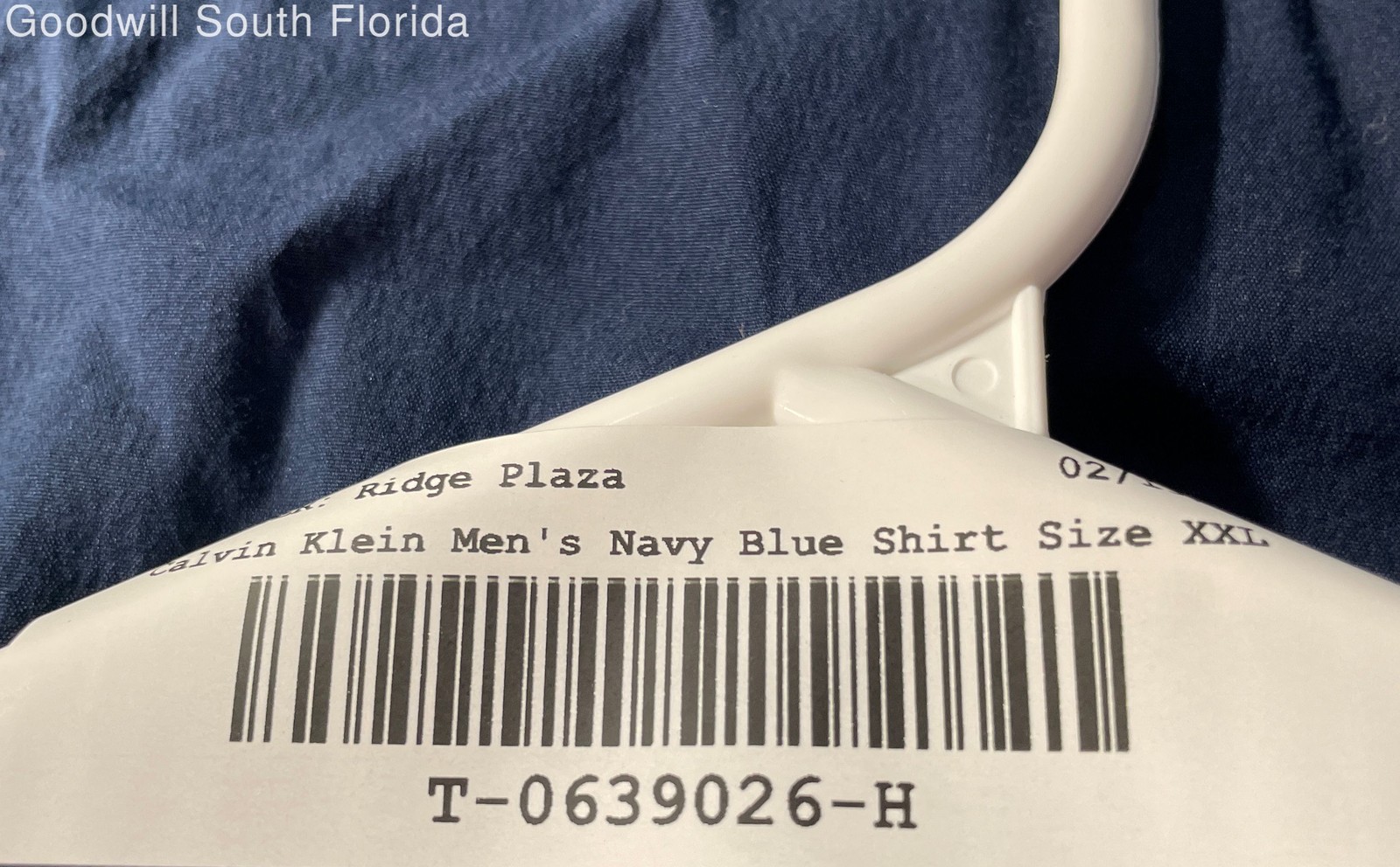 как выглядит Calvin Klein Mens Navy Blue Cotton Stretch Slim Fit Button-Up Shirt Size XXL фото
