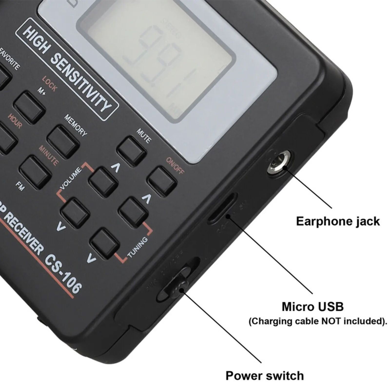 1Pc CS-106 Digital Radio LCD Display FM/AM/SW/MW Receiver w/ Earphone