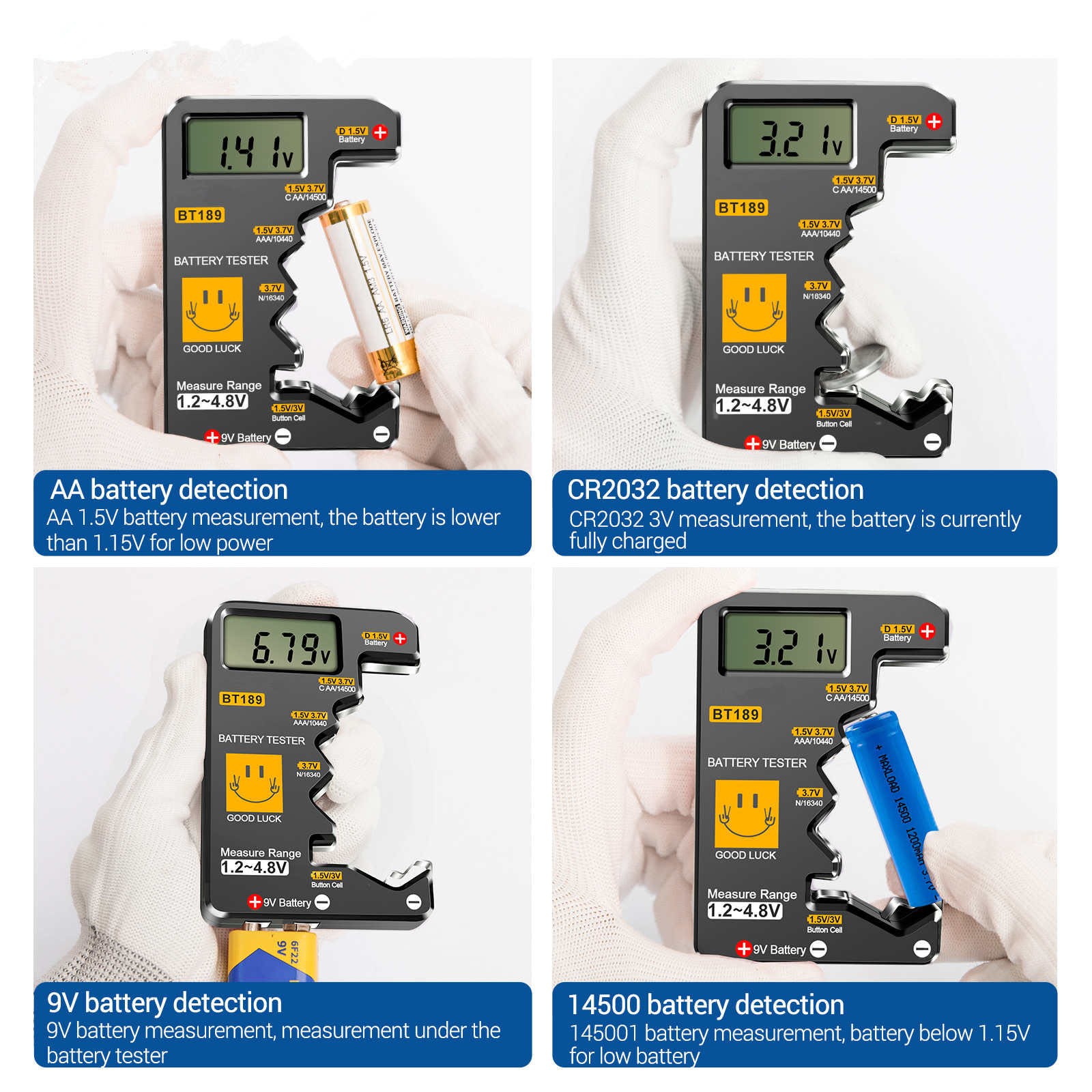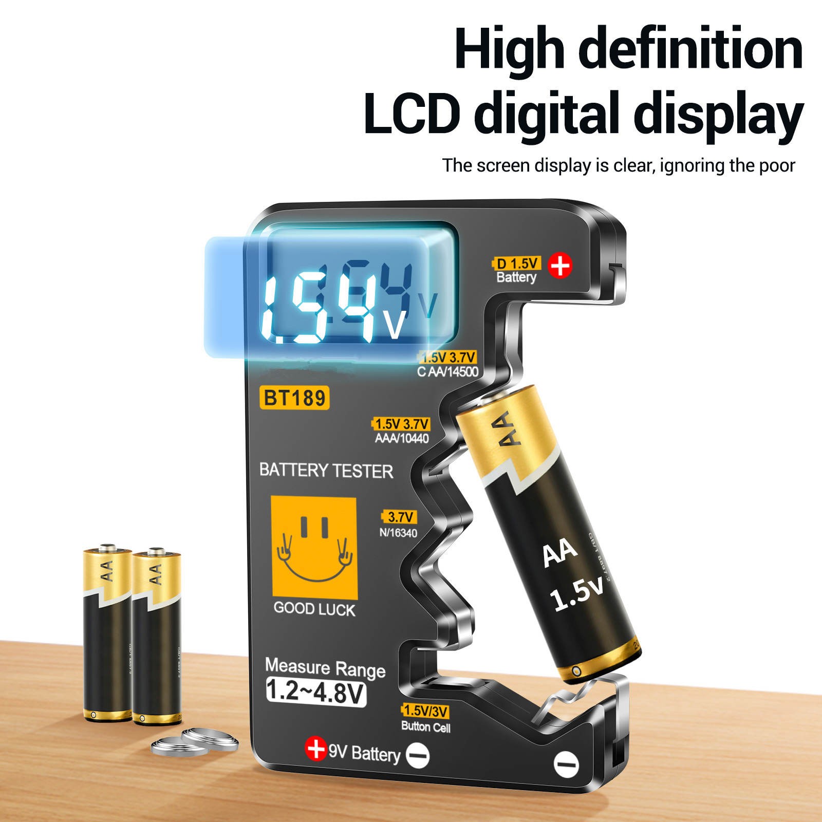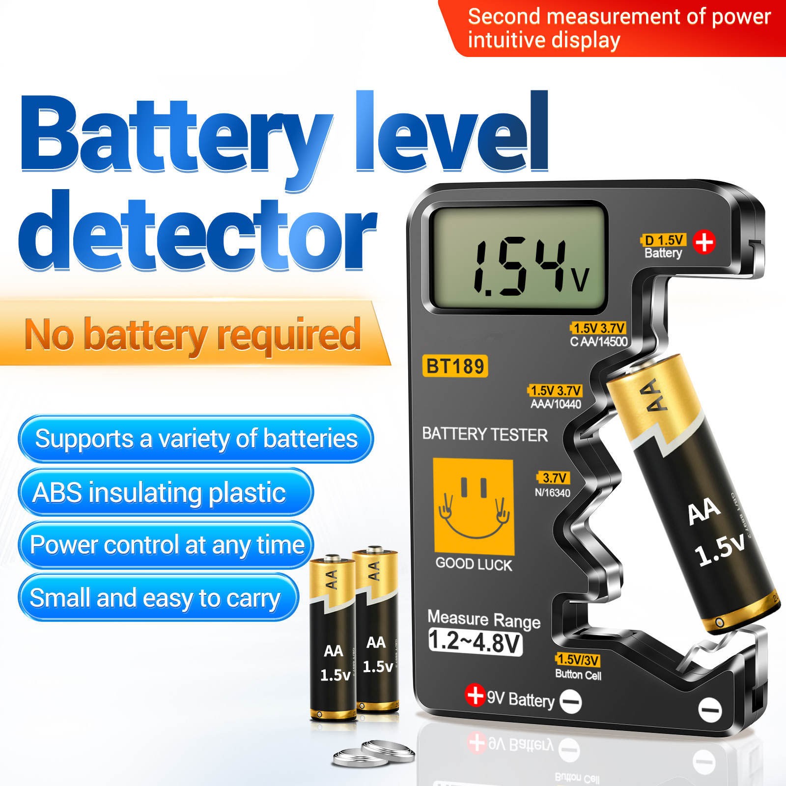 Instant Reading Battery Voltage Tester For 9V Block AA C D Button Cell Slim