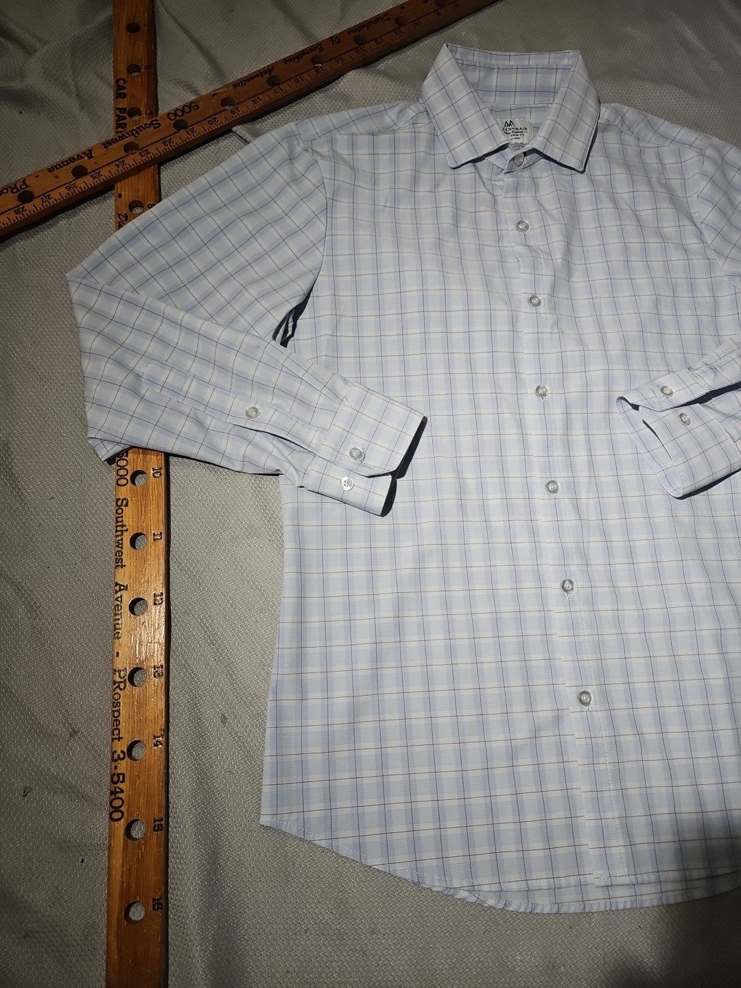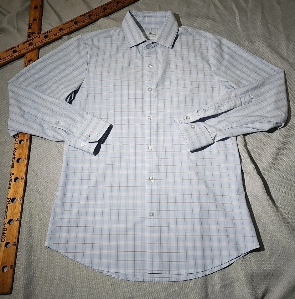как выглядит Mizzen Main Shirt Mens Medium Blue White Button Down Trim Fit Preppy Stretch фото