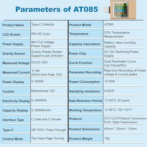 USB C Power Meter Testers, PD3.1 Digital Multimeter, USB C Voltage Current