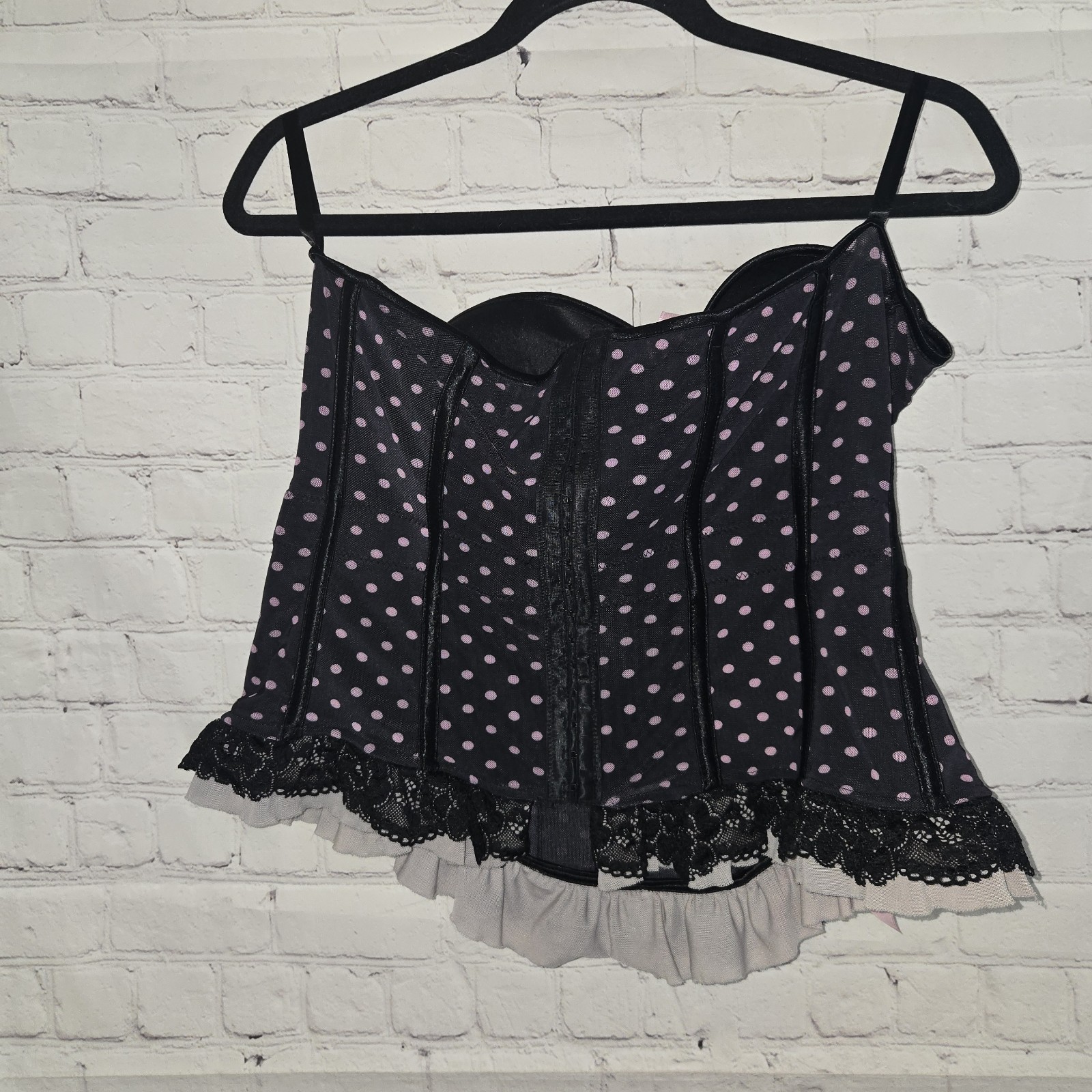 Shirley of Hollywood Black Pink Polka Dot Lace Bustier