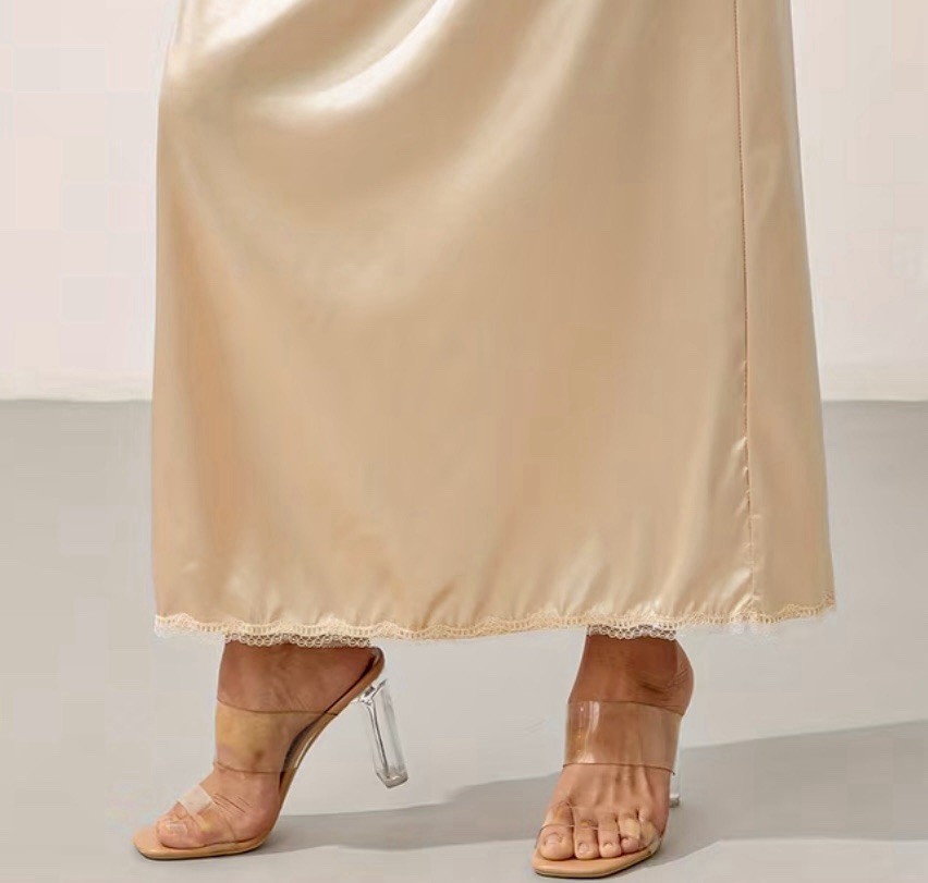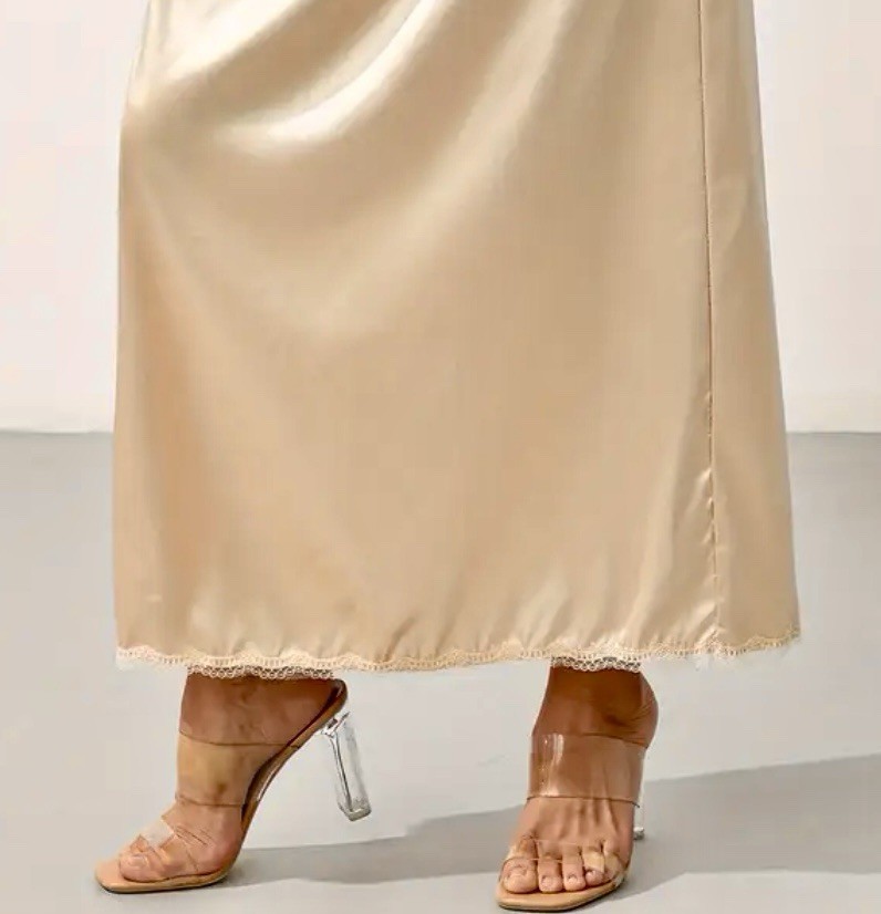 New Gorgeous Feminine Light Gold Satin Lace Hem Long Half Slip Plus 2X NEW