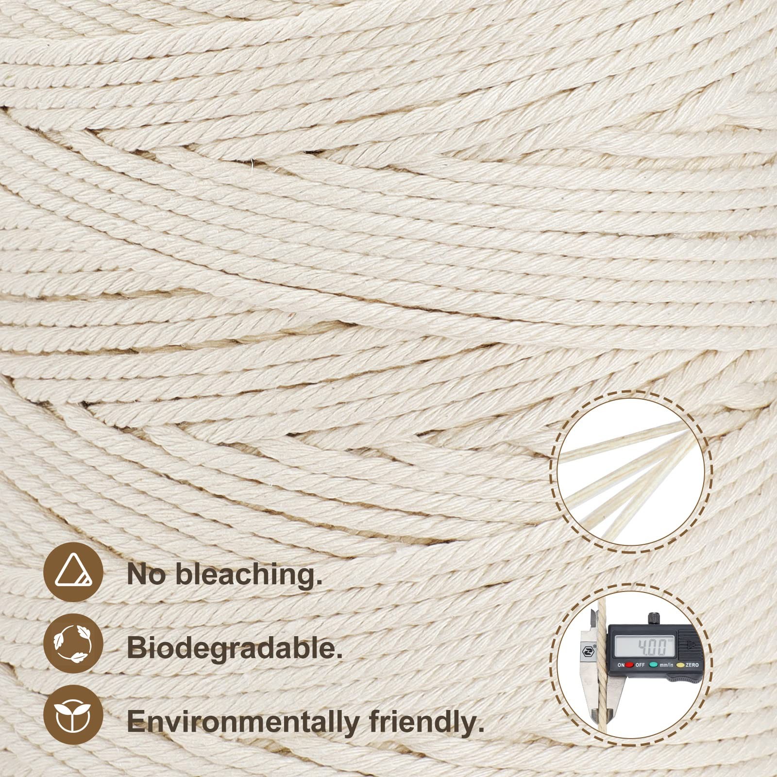 4mmx328yd Macrame Cord 100 Natural Cotton Rope 4 Strand Twisted Mint Green