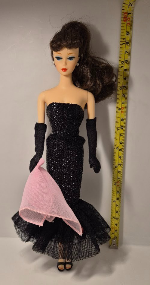 Barbie 1958 Reproduction Doll 1995 Brunette Ponytail Black Evening Gown Vintage
