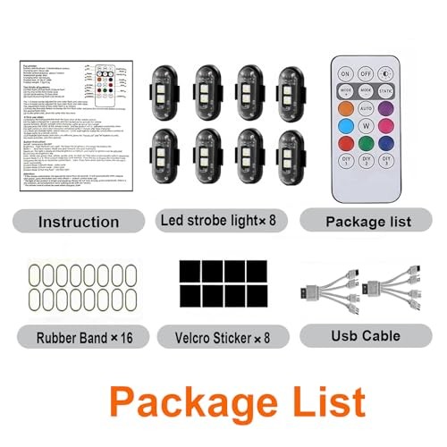 Included Components: 8Pcs Wireless LED Strobe Lights, Remote controller