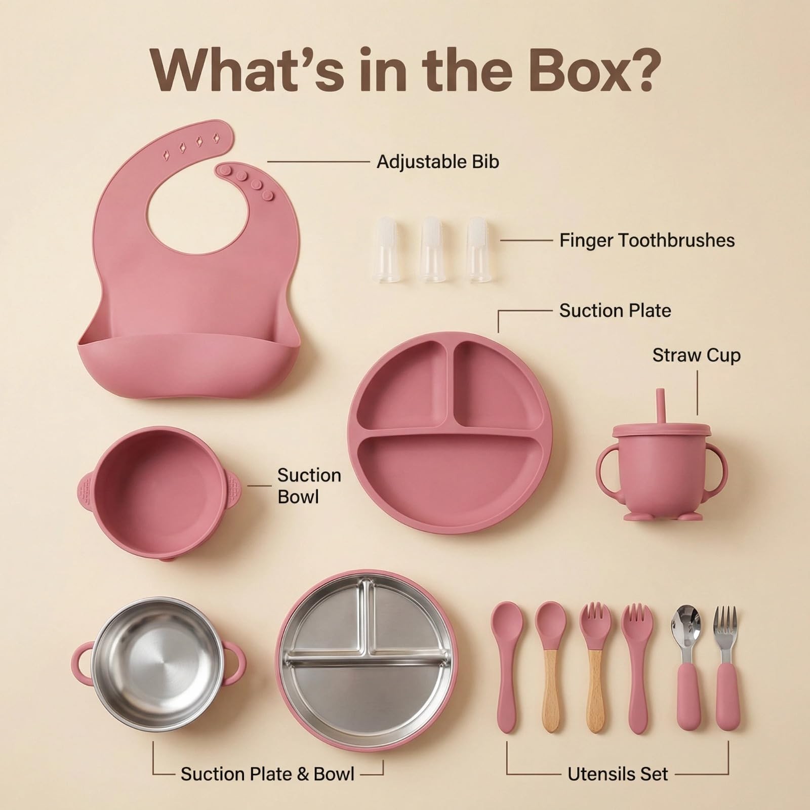 16 Pack Silicone Baby Feeding Set with Suction Plates Bowls, Stainless Stee...