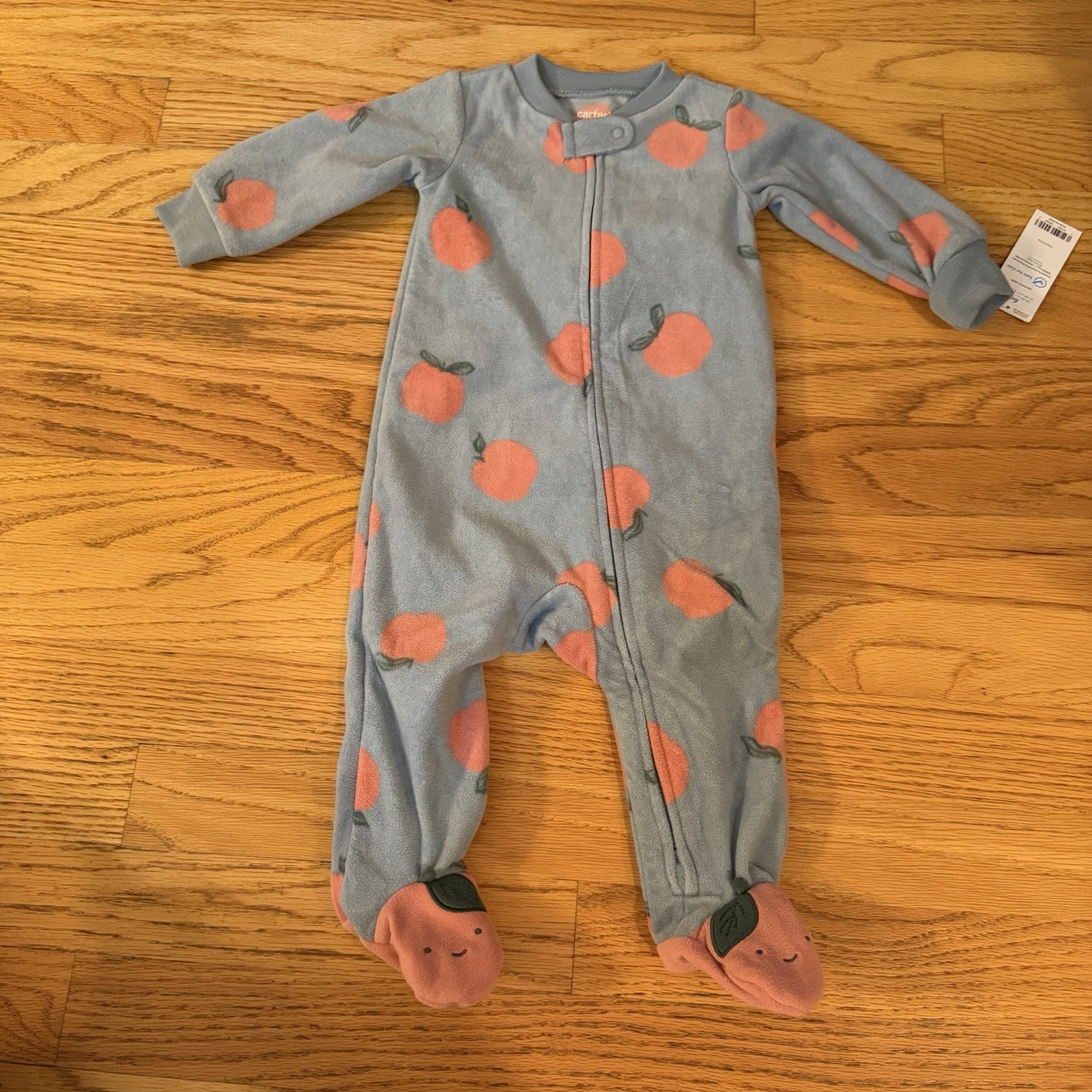 как выглядит carters 6m blue w/ pink peach fleece footed pajamas фото