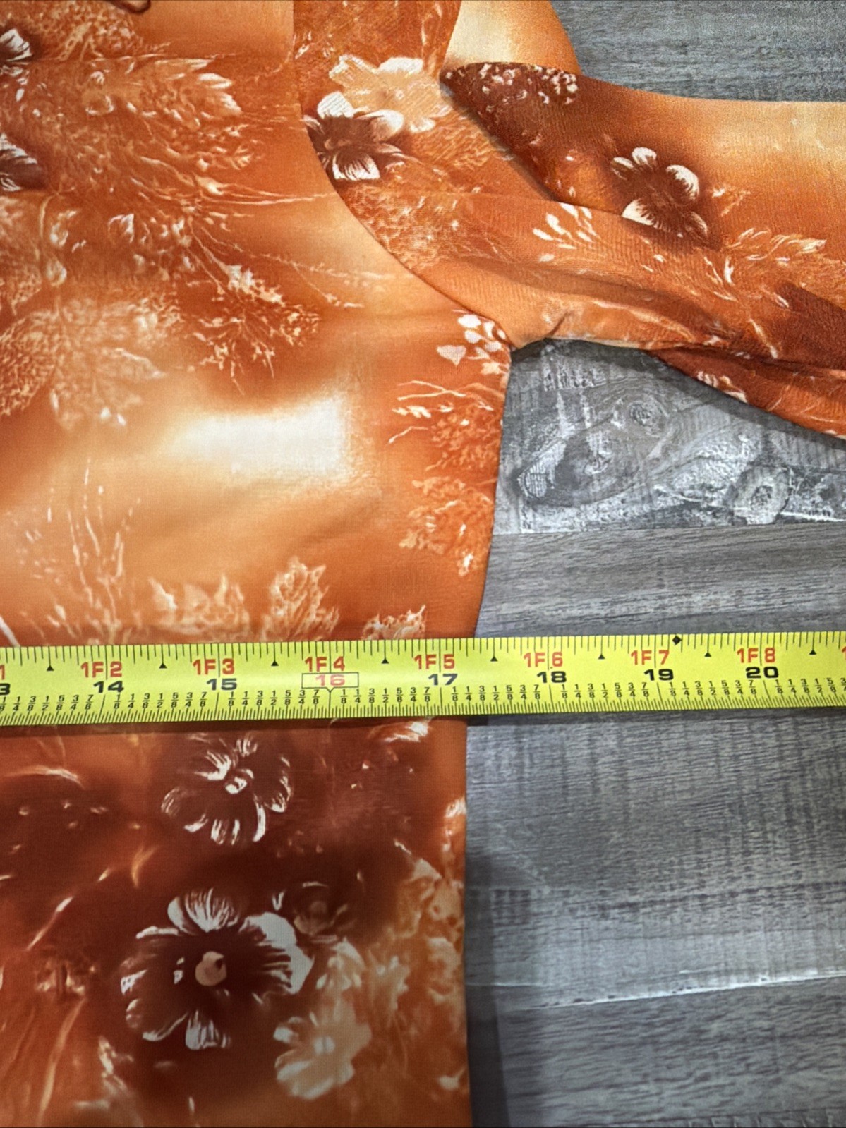 как выглядит Vtg 70s Made In California Polyester Disco Button Up Shirt Sz M Orange Floral фото
