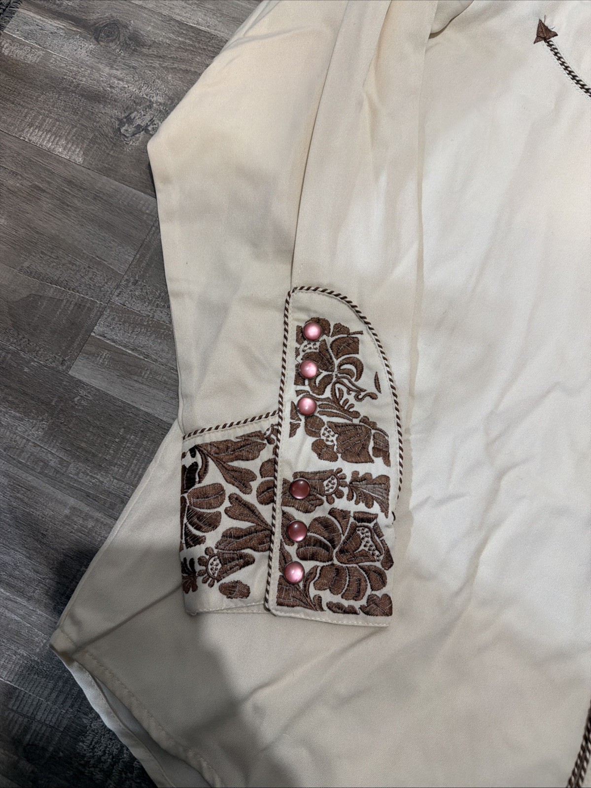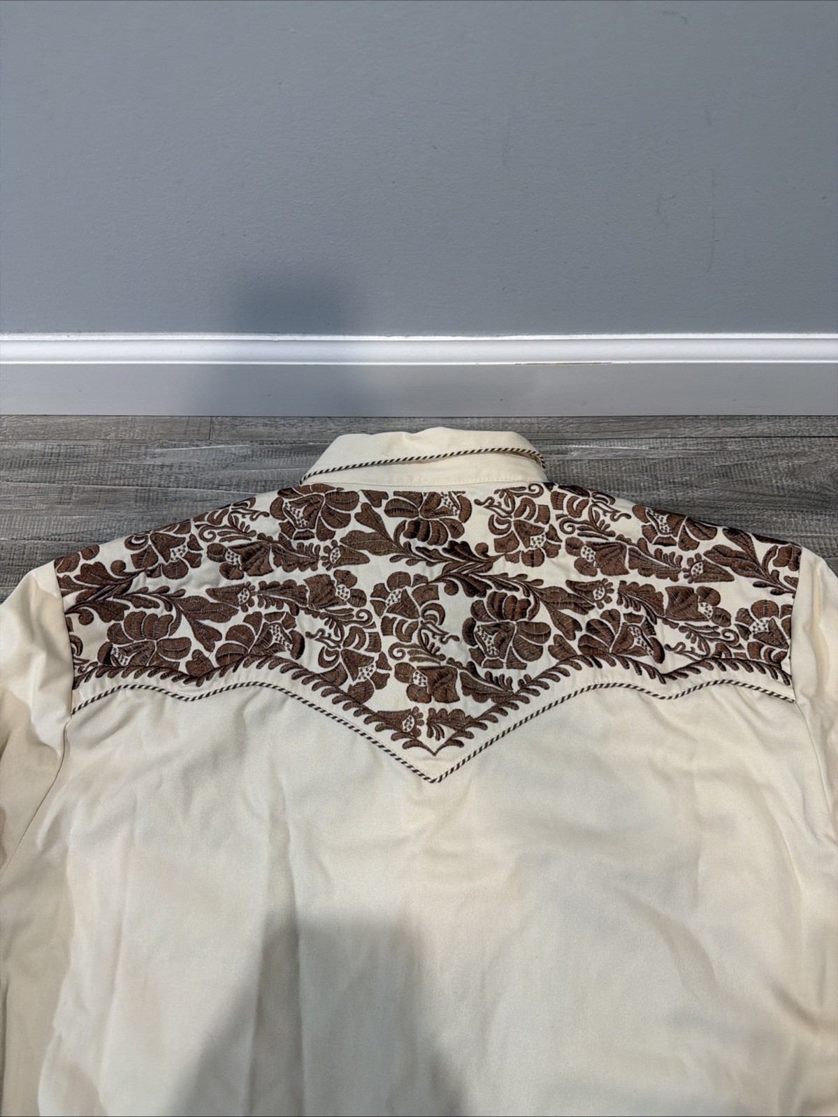 как выглядит Scully Long Sleeve Pearl Snap Western Cowboy Ivory Embroidered Shirt Mens Sz L фото