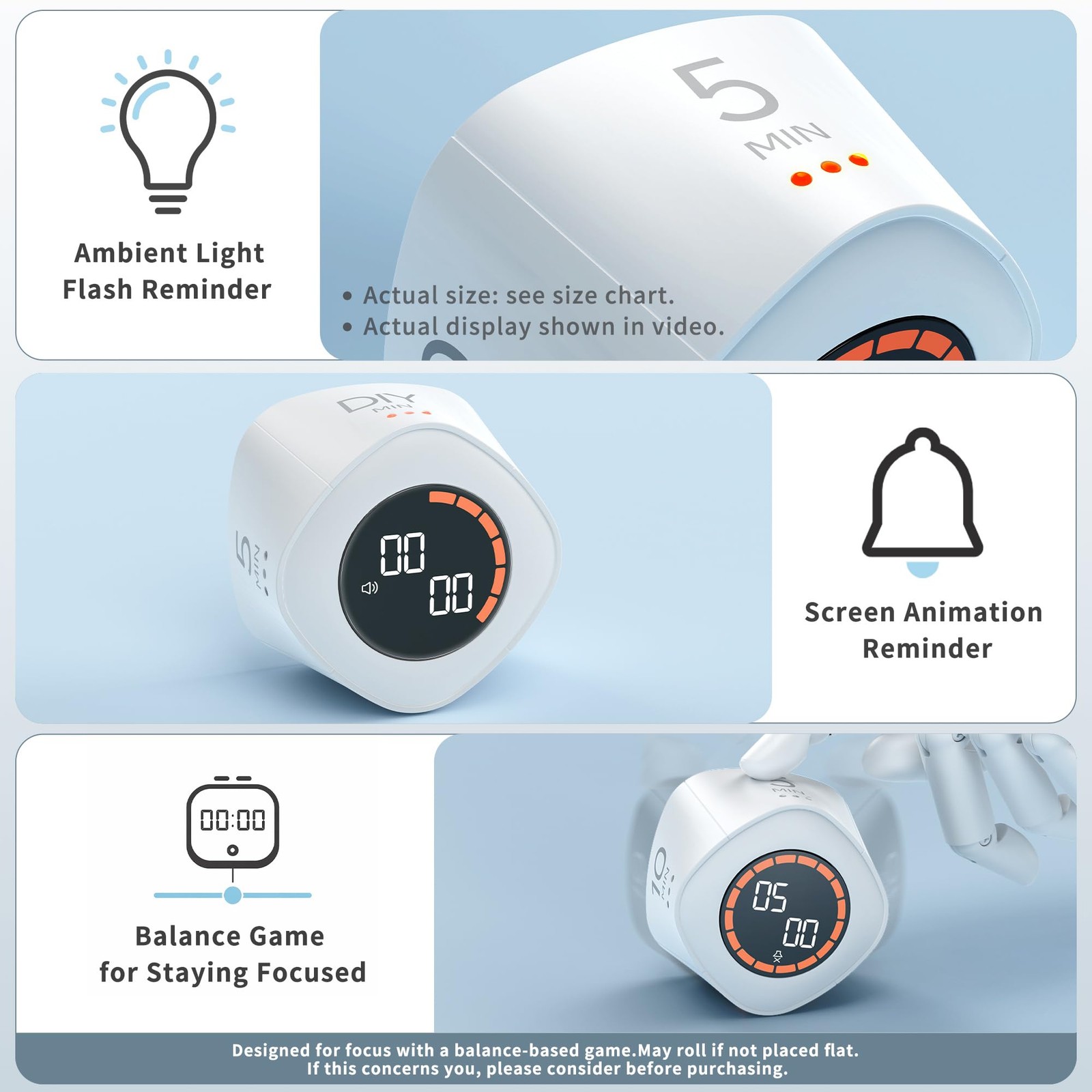 как выглядит Cube Productivity Timer, 5/10/25/DIY Min Presets Count-Up Mode, Time Displa... фото