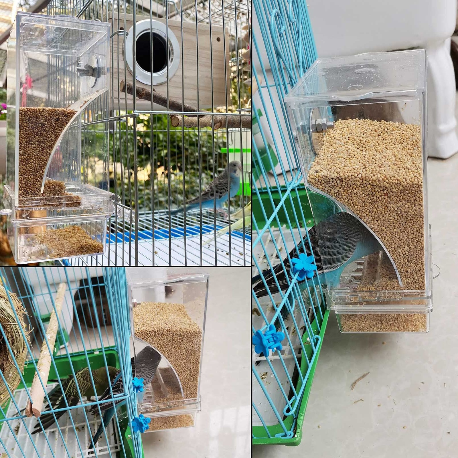 No-Mess Bird Feeder Parrot Integrated Automatic Feeder Food Container Acrylic...