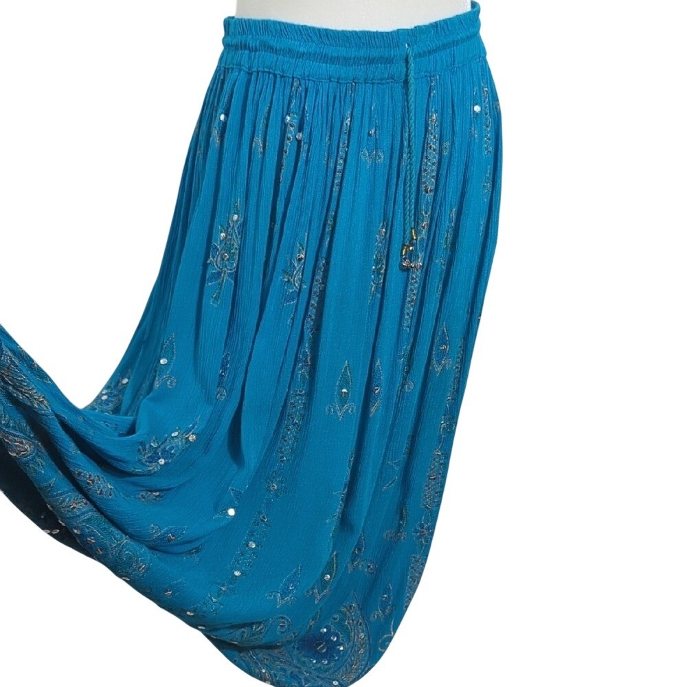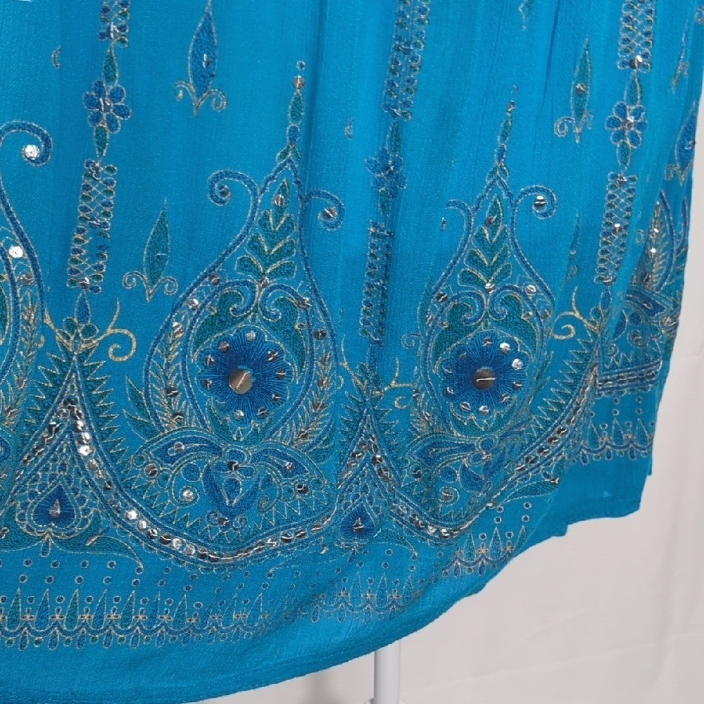как выглядит Bollywood Indian Maxi Skirt Turquoise Gypsy Ethnic Sequins Rayon Boho India OS фото