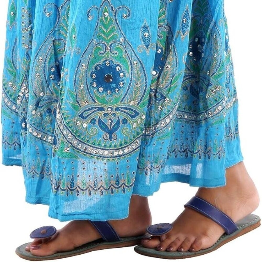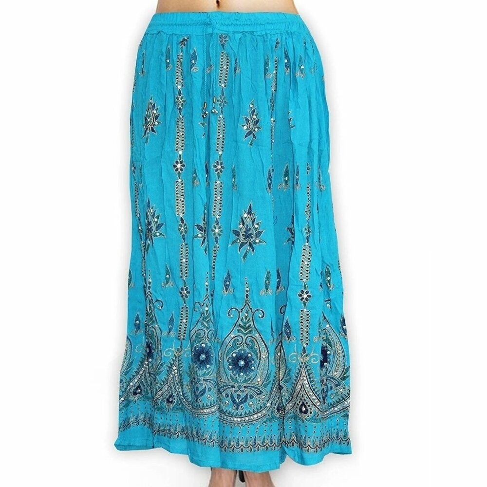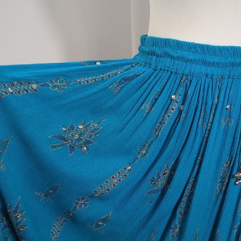 Bollywood Indian Maxi Skirt Turquoise Gypsy Ethnic Sequins Rayon Boho India OS