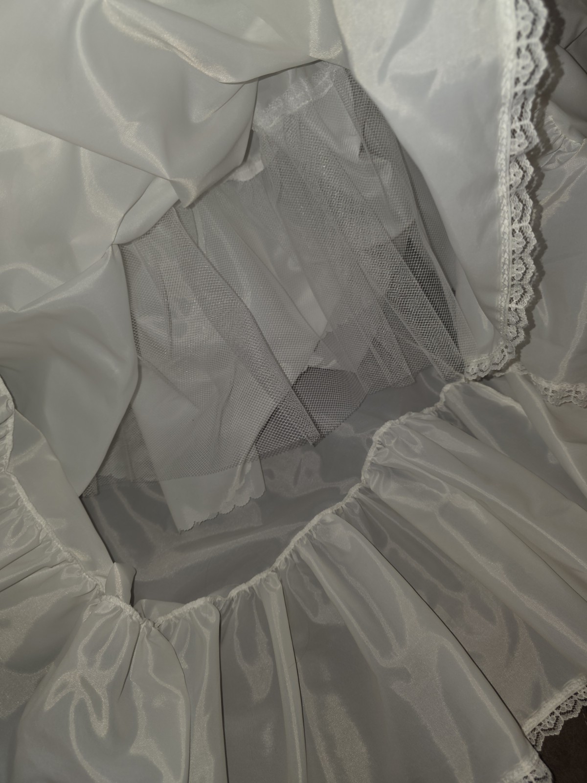 Vtg Hoopless Petticoat Crinoline Underskirt Tiered Lace Ball Gown USA Made M