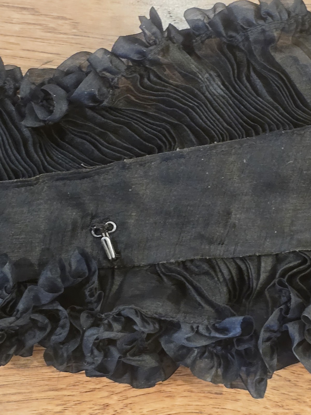 Antique Victorian Black Collar Neck Ruff Ruffled Pleated Handmade