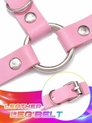 Leather Leg Harness Black Garter Belt Waist Punk Thigh Straps Free Size Pink