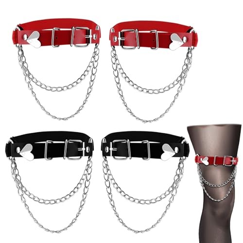 Garter Belt Adjustable Leather Leg Harness - 4 Elastic Thigh Strap, Punk Style