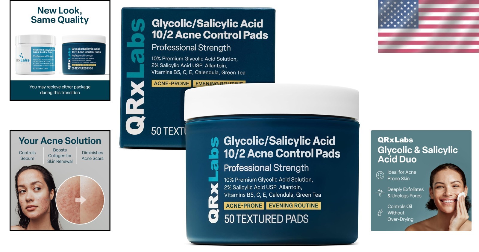 Ingredients: Glycolic Acid, Salicylic Acid, Vitamin C, Vitamin E, Vitamin B5, Green Tea, Calendula Extract