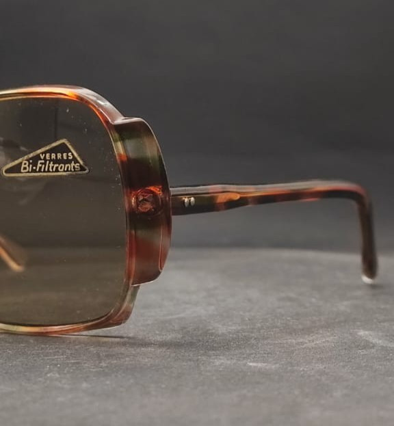 Vintage Bi-Filtrants France Oversized Square Sunglasses Brown 70s