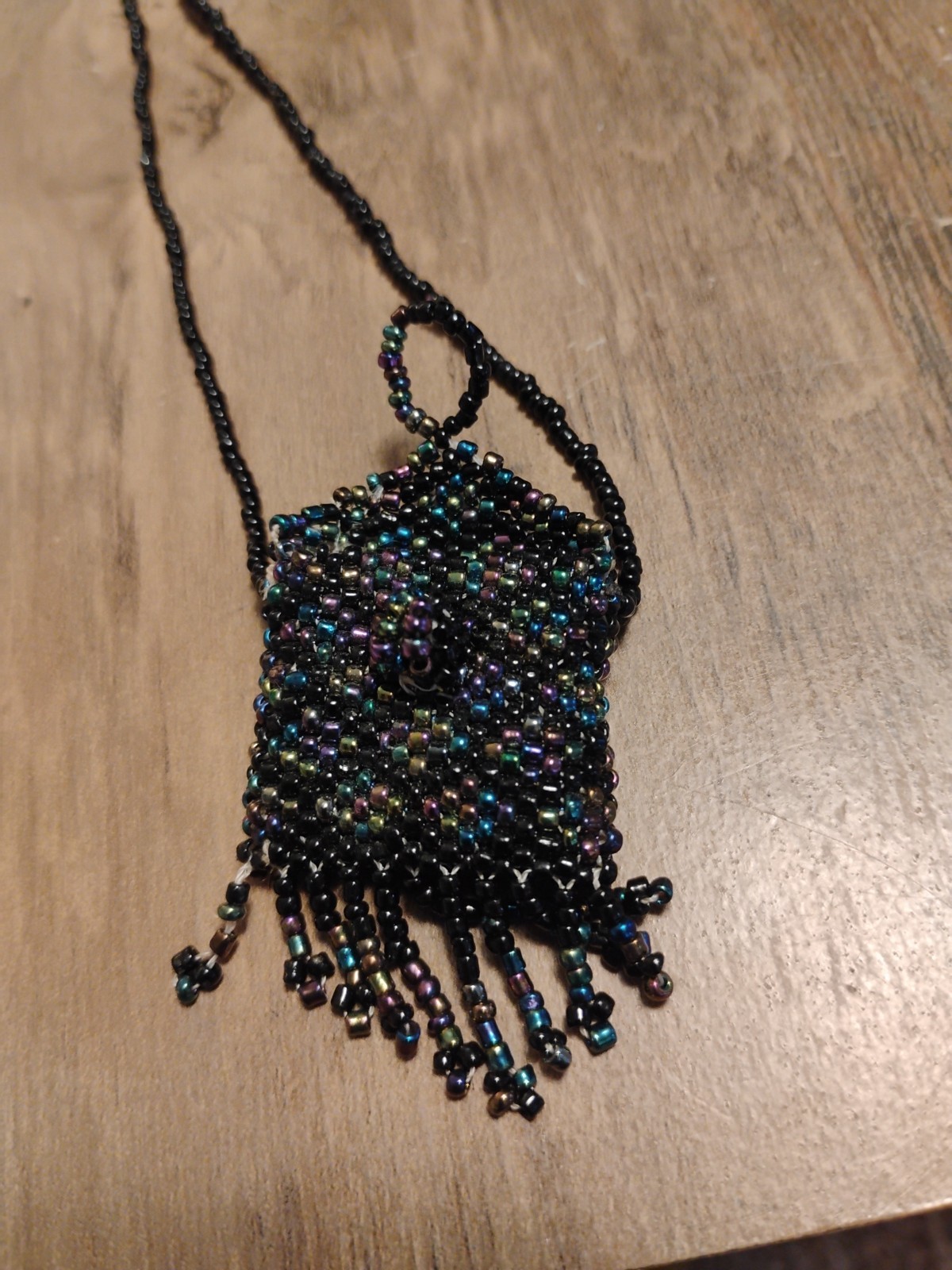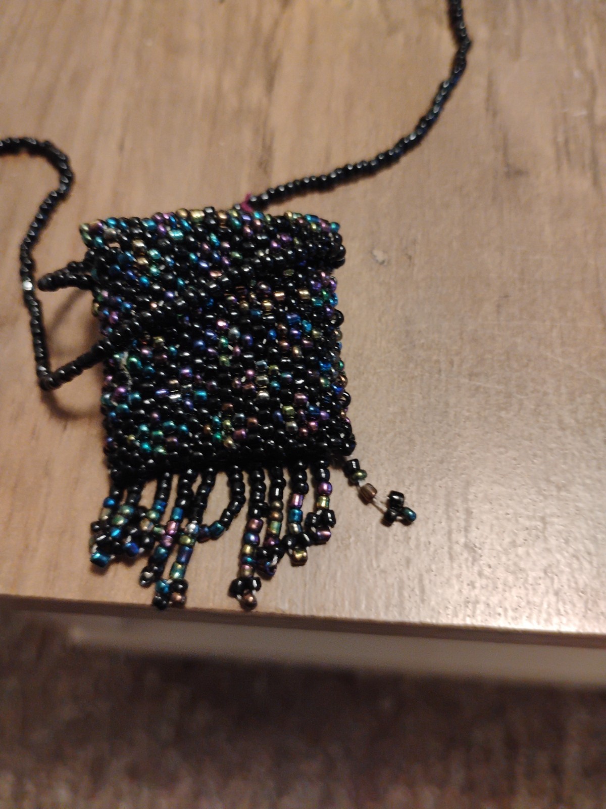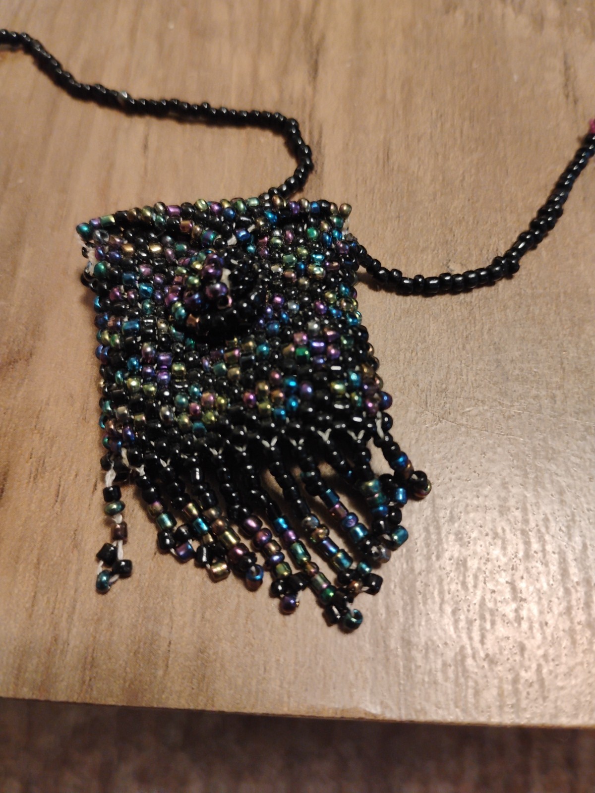 beaded medicine pouch necklace coin purse bag vintage opens up