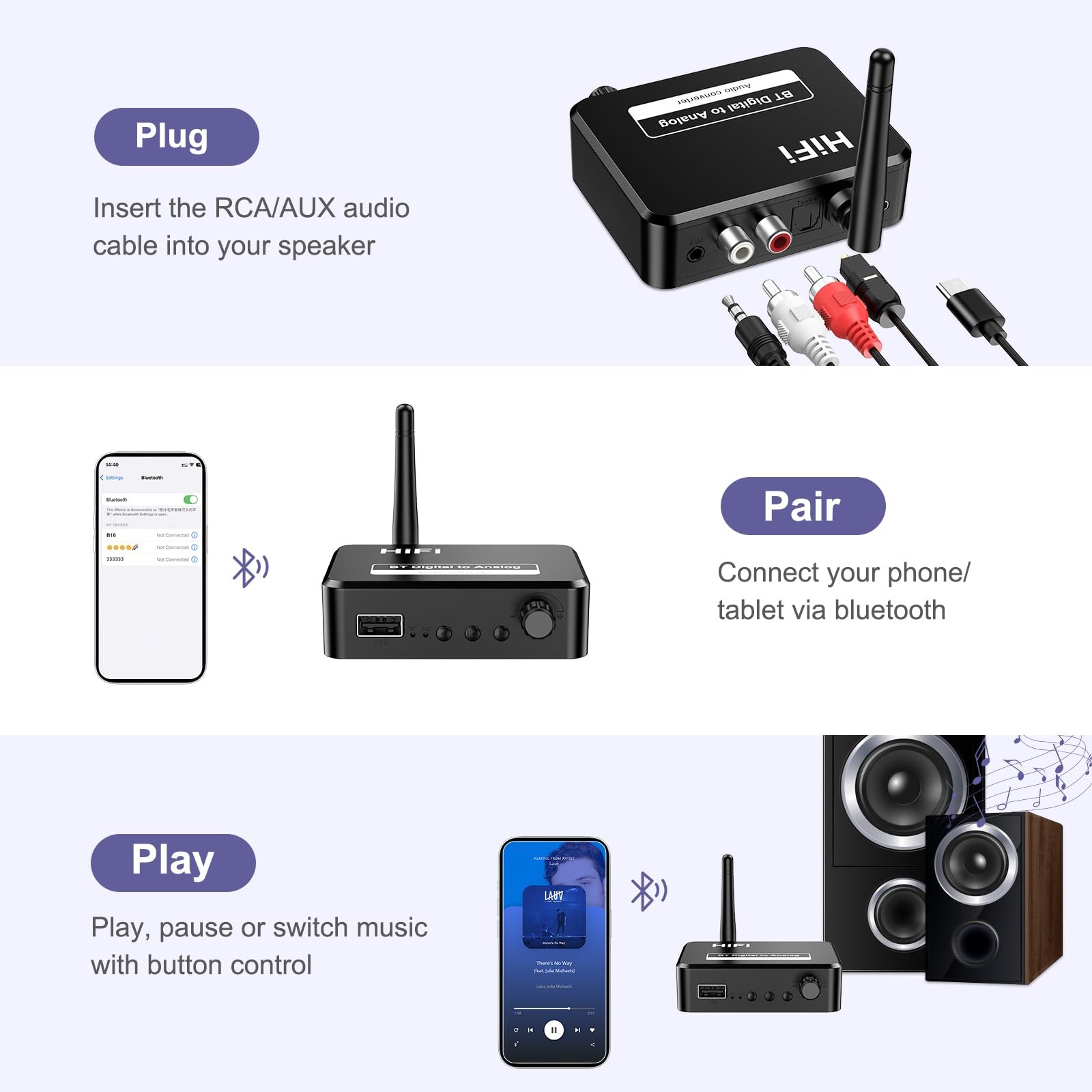 Bluetooth 5.1 Receiver for Home Stereo, Digital to Analog Audio Converter for...