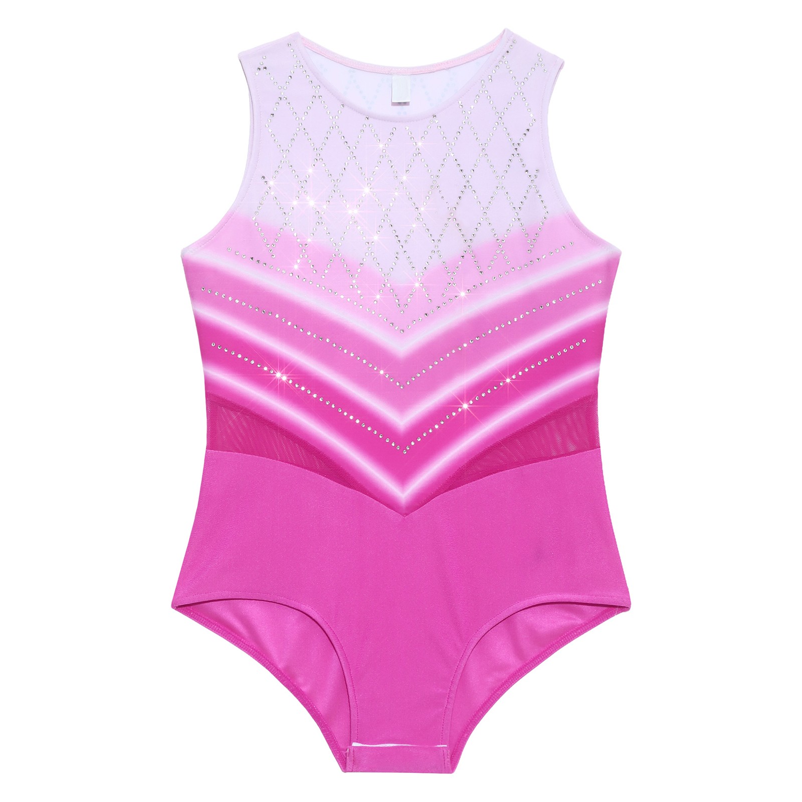 Kids Girls Bodysuit Sparkly Leotard Mesh Jumpsuit Quick-dry Dancewear Practice