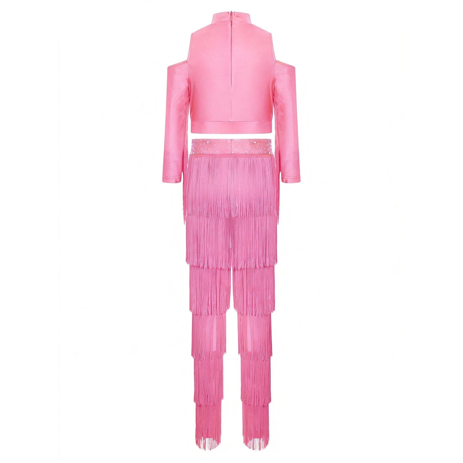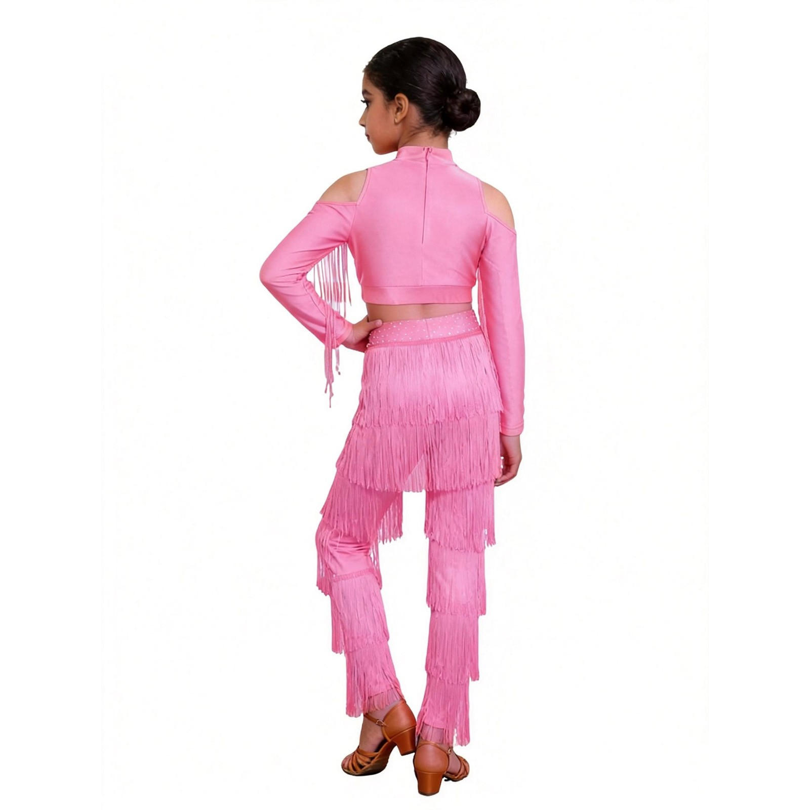 Girl Latin Dance Modern Salsa Rumba Tassel Crop Top Fringe Pant Ballroom Costume