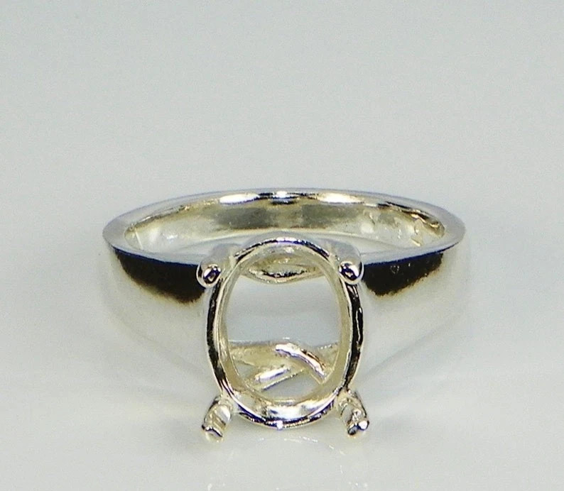 Oval Comfort Fit Sterling Silver Ring Setting Pre Notched 10x8mm Jewelry