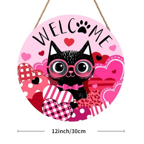 Welcome Valentine's Day Door Sign For Front Door Decor,Pink Love Black Cat