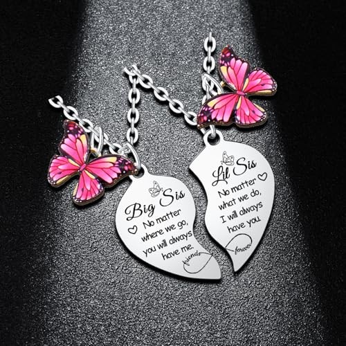 2PCs Heart Matching Pendant Necklace Set - Big Sis Lil Sis Gifts for Christmas