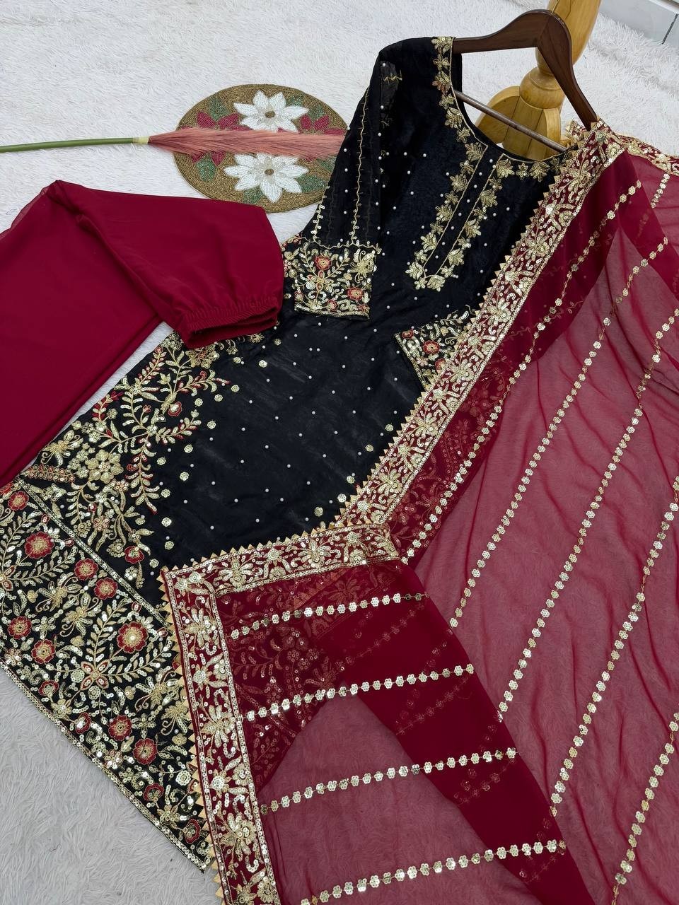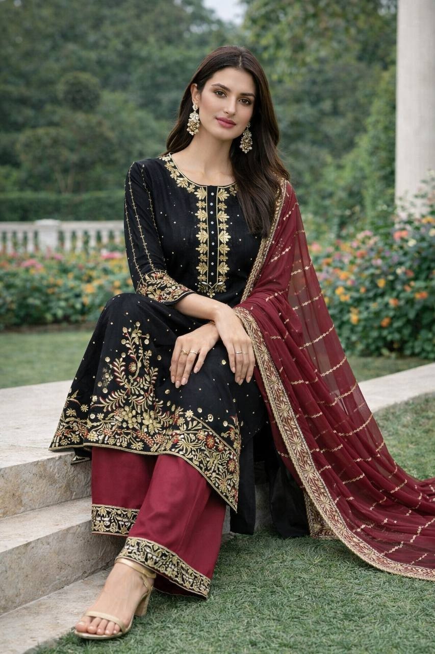 beautiful embroidery and sequence work with riveted moti work.(*W |