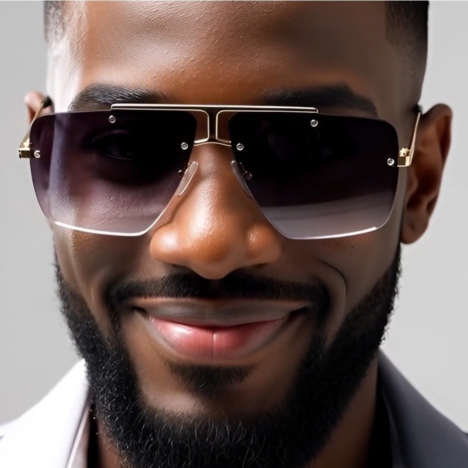 Men's Oversized Rimless Shield Sunglasses Gold Double Bridge Gradient Lenses New