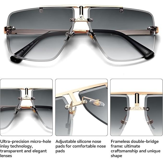 как выглядит Mens Oversized Rimless Shield Sunglasses Gold Double Bridge Gradient Lenses New фото