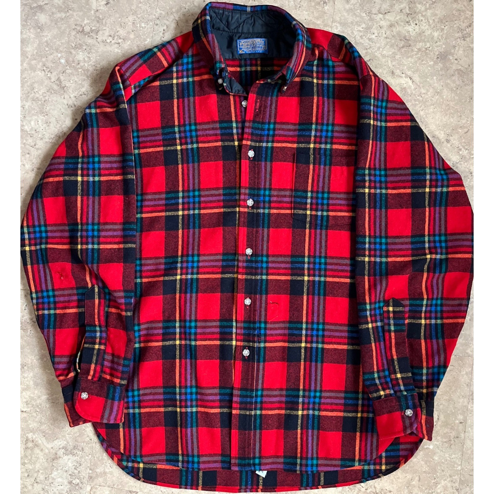 как выглядит Pendleton Vintage Wool Flannel Shirt Mens L Red Plaid Button Down USA Made 70s фото