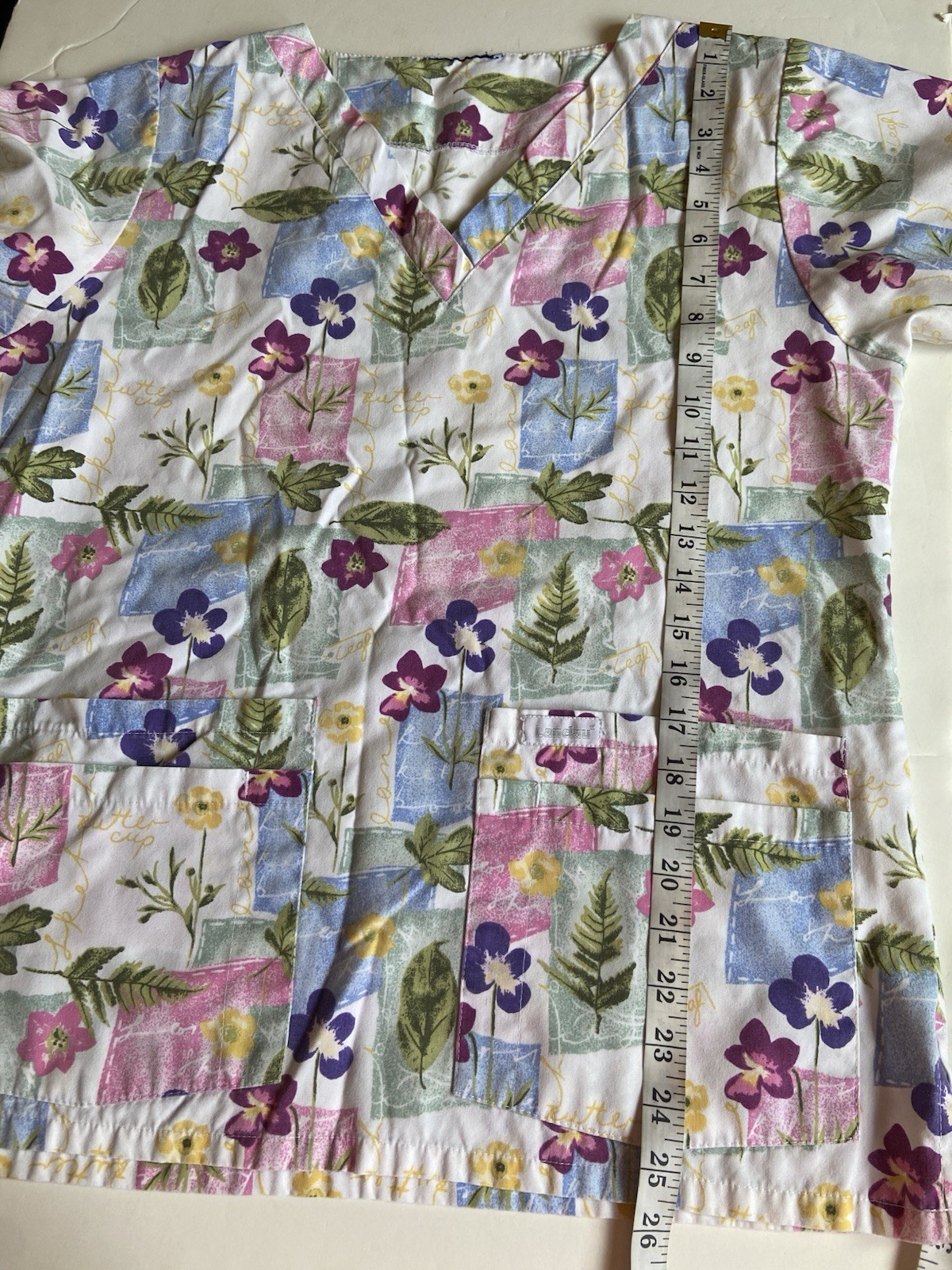 Landau Scrubs Top Women Spring Flowers Small Medical Floral Polyester Blend