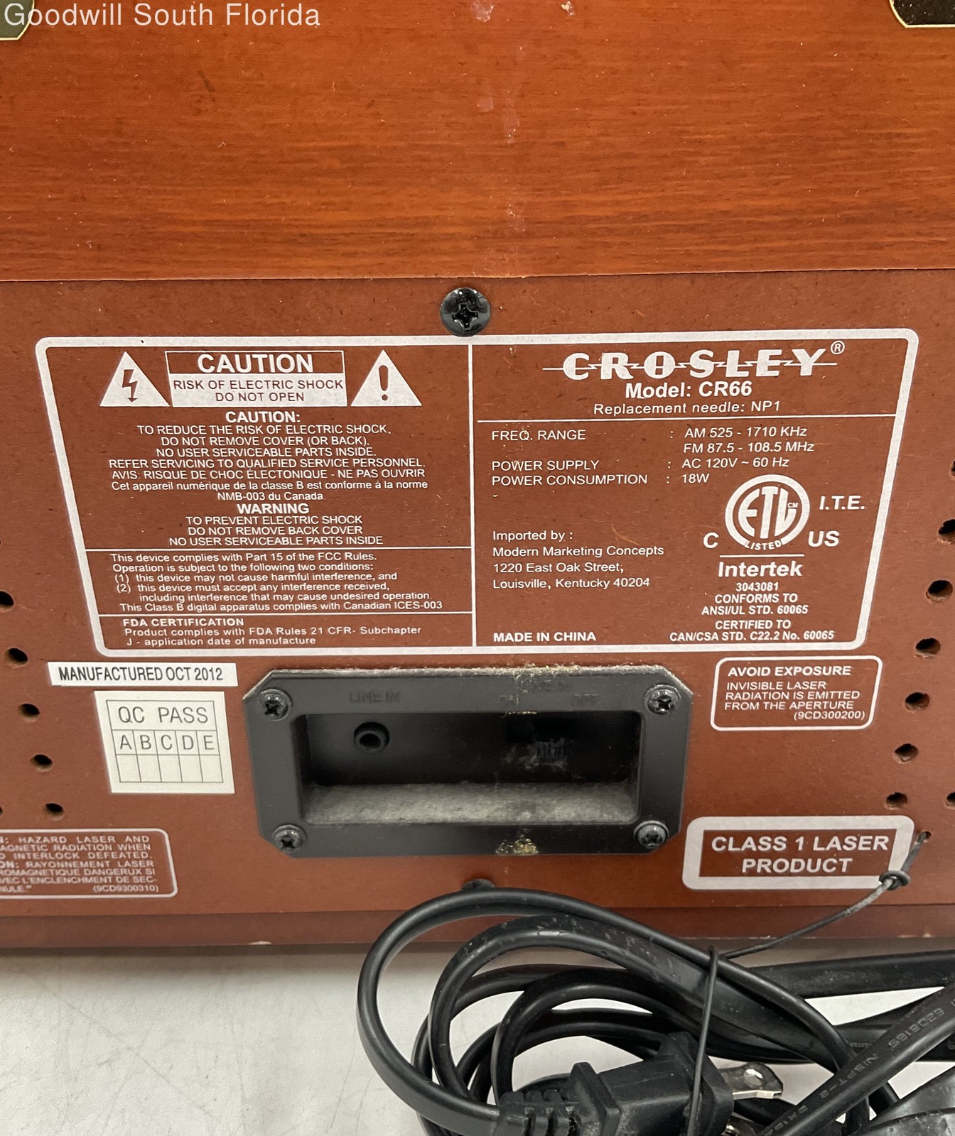 Crosley CR66 Brown Radio Rochester Sound System Turntable Not Tested