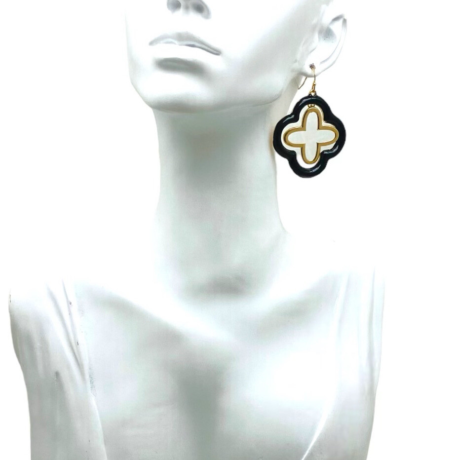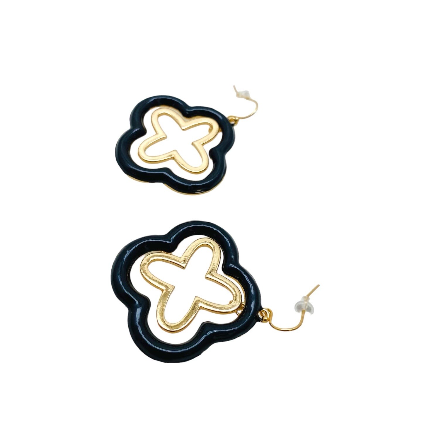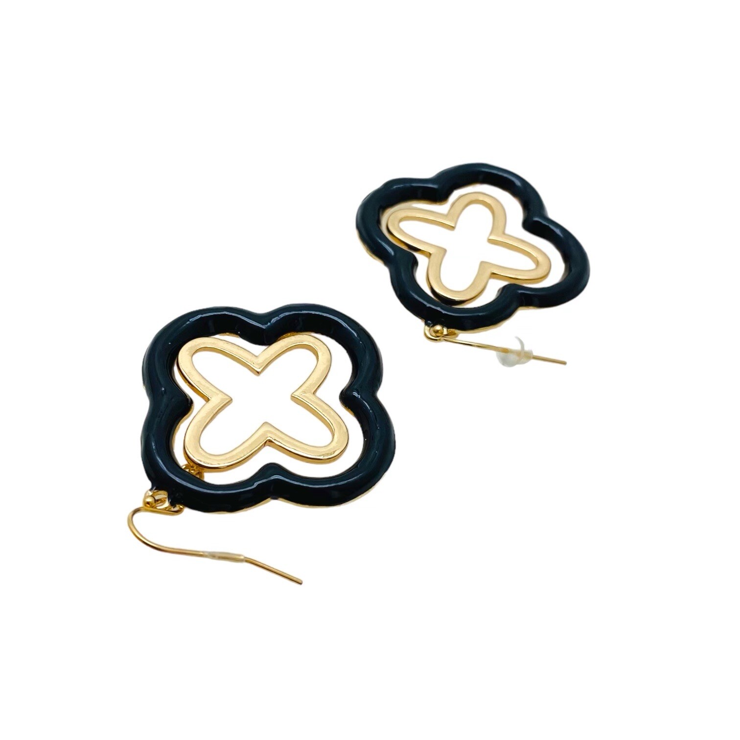 Gold Plated Shamrock Clover Dangle Earrings Black Enamel Irish St Patrick s 2