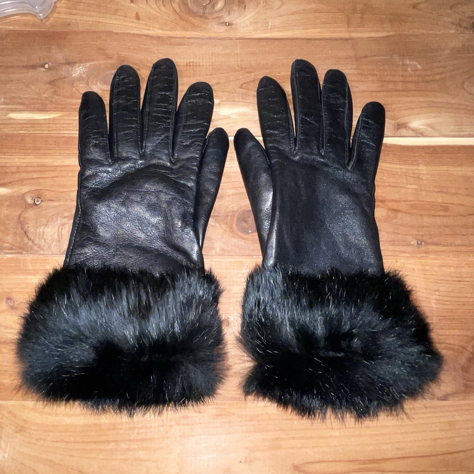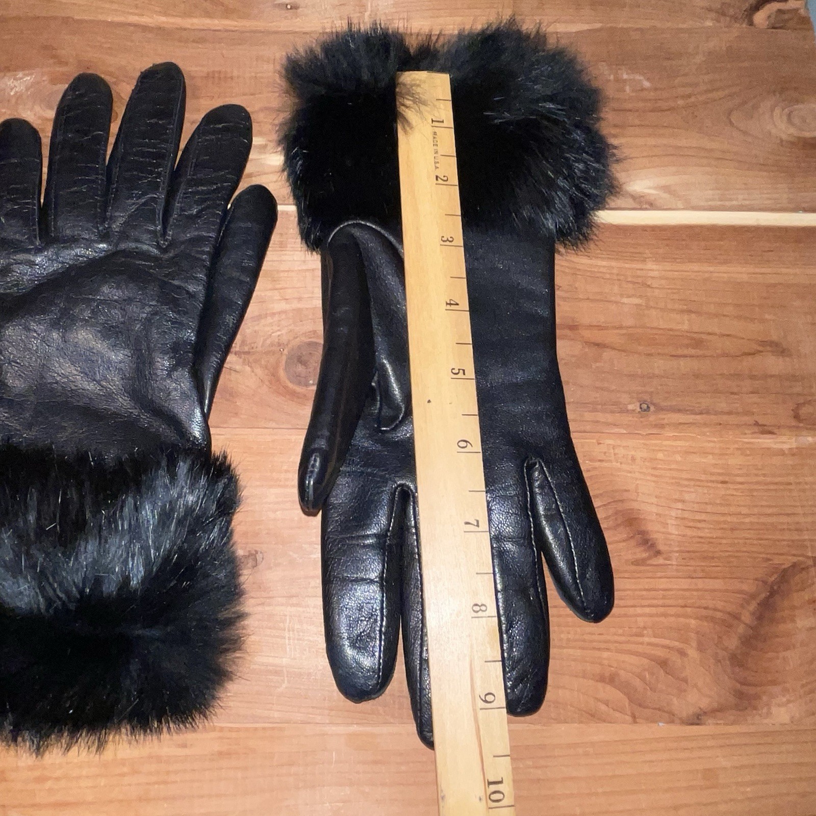 как выглядит Womens Black SOFT LEATHER GLOVES 100 Cashmere Lined FUR Cuffs Size 7 Vintage фото
