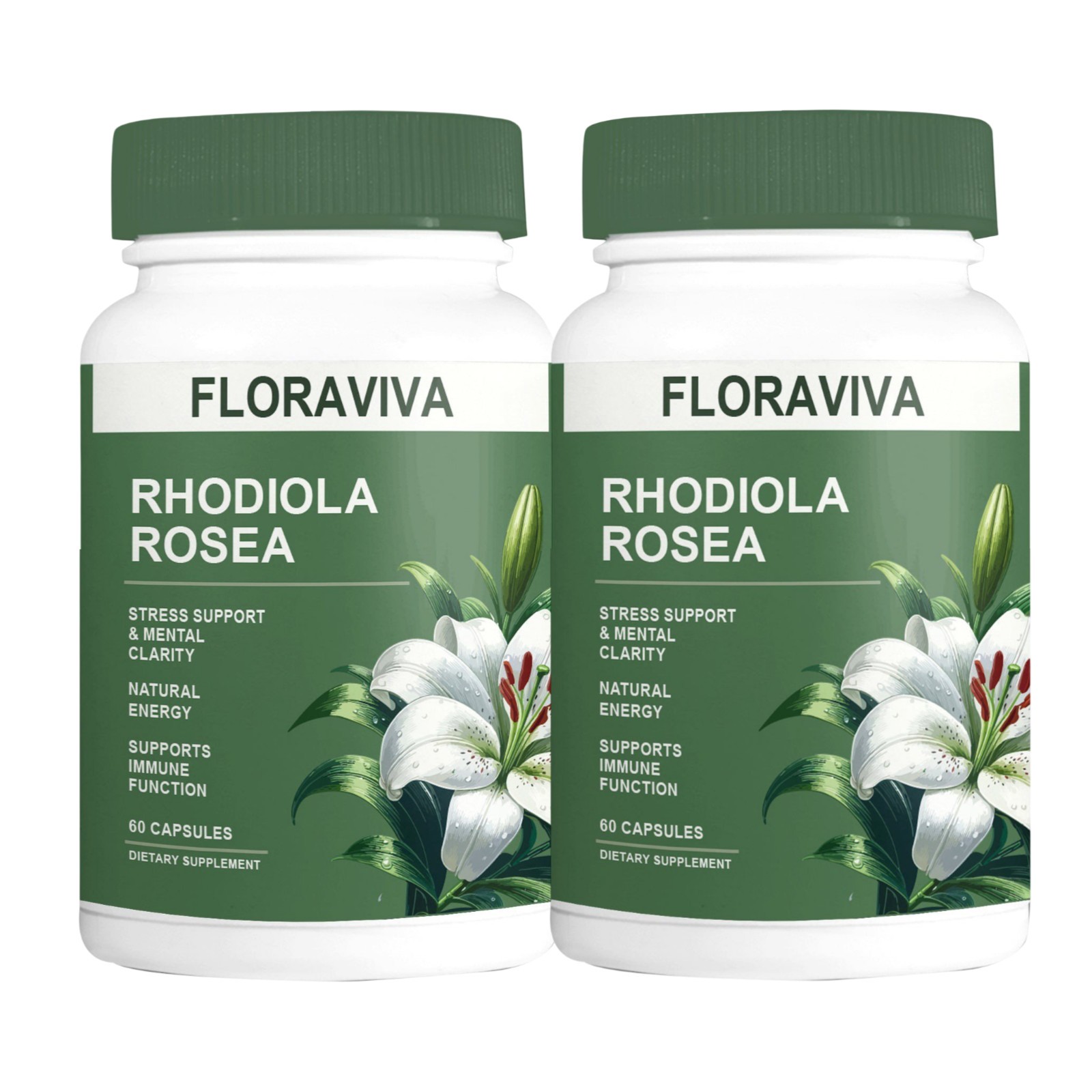 2-Pack Rhodiola Rosea Capsules - Floravida for Energy, Focus, Mood -120 Capsules
