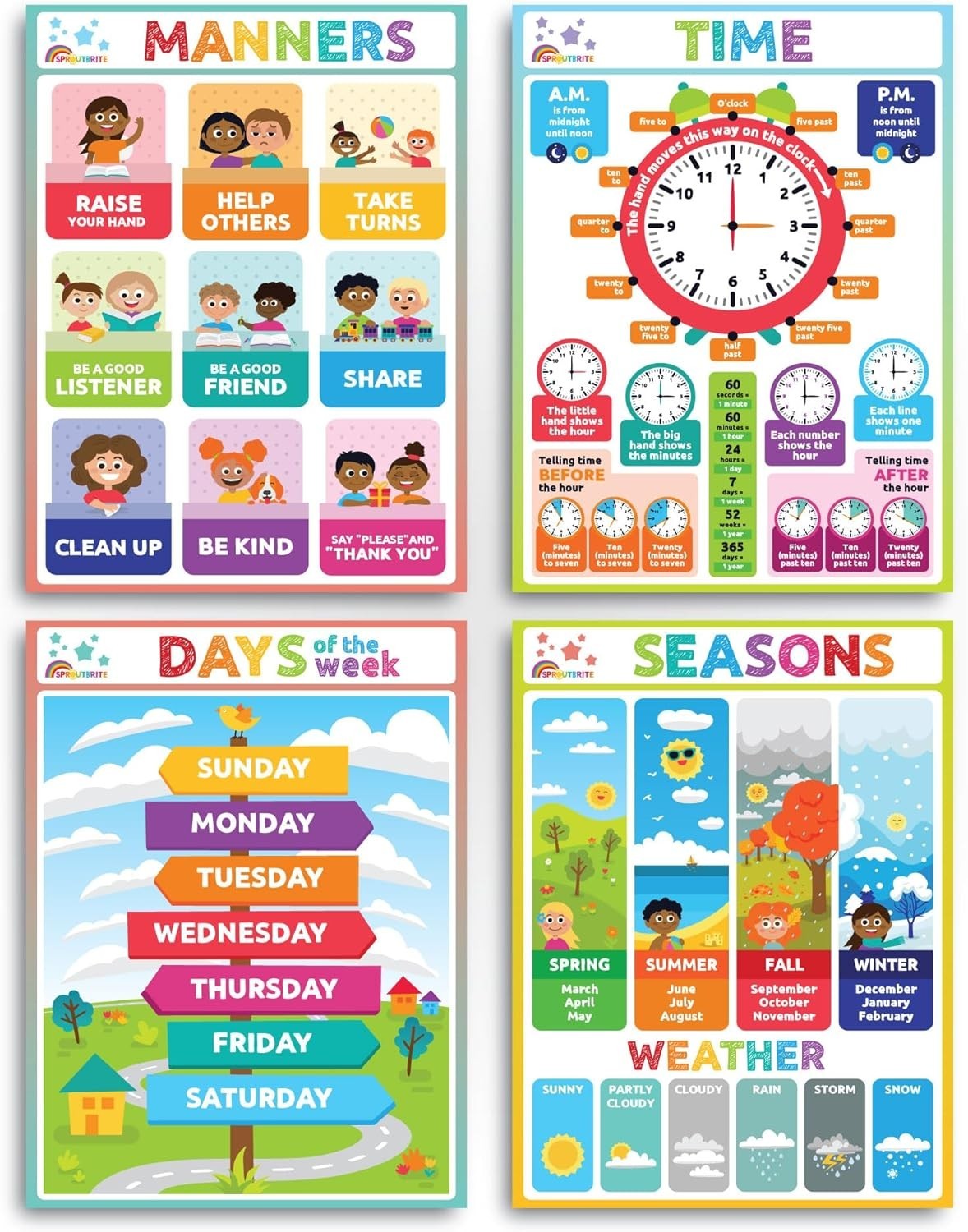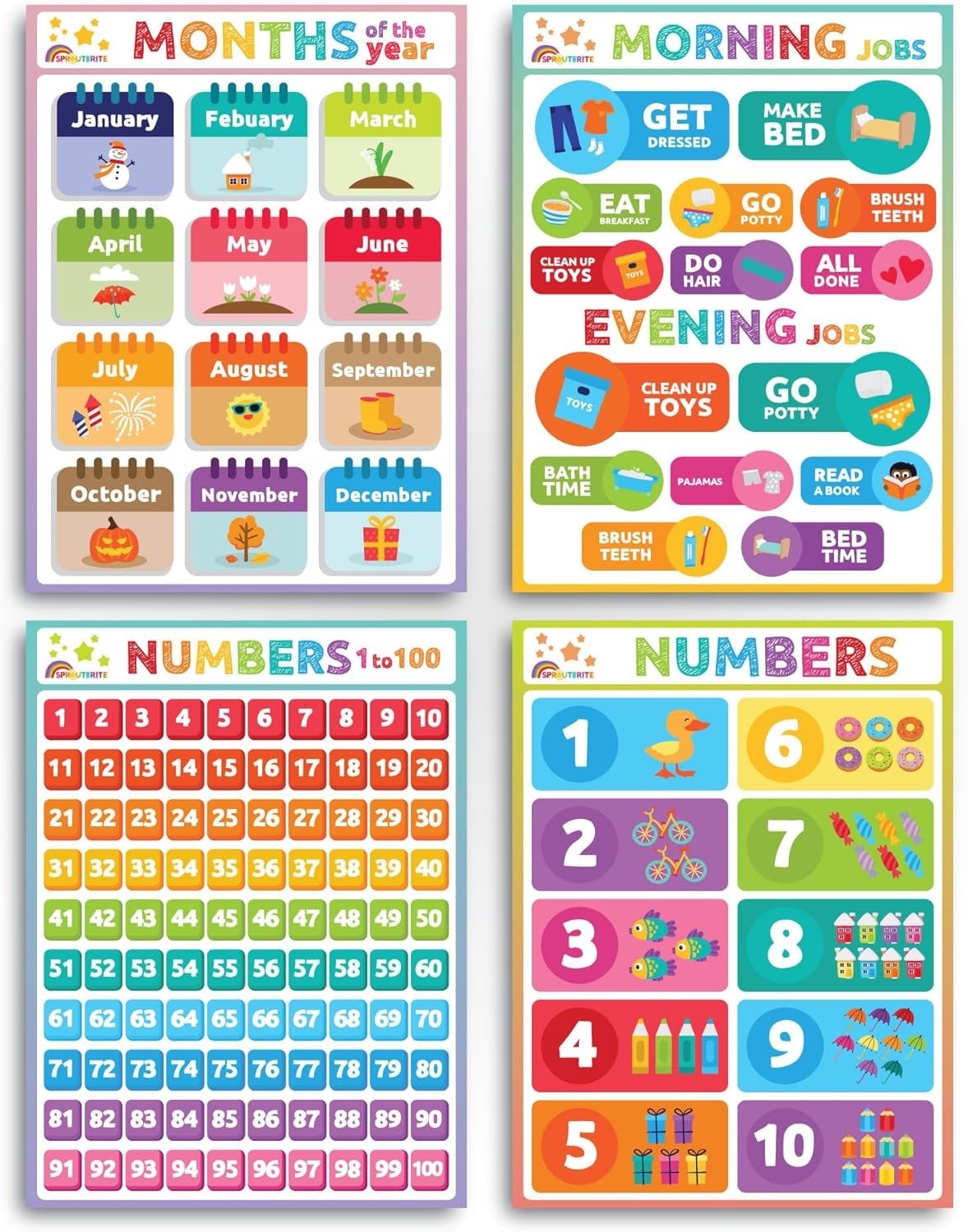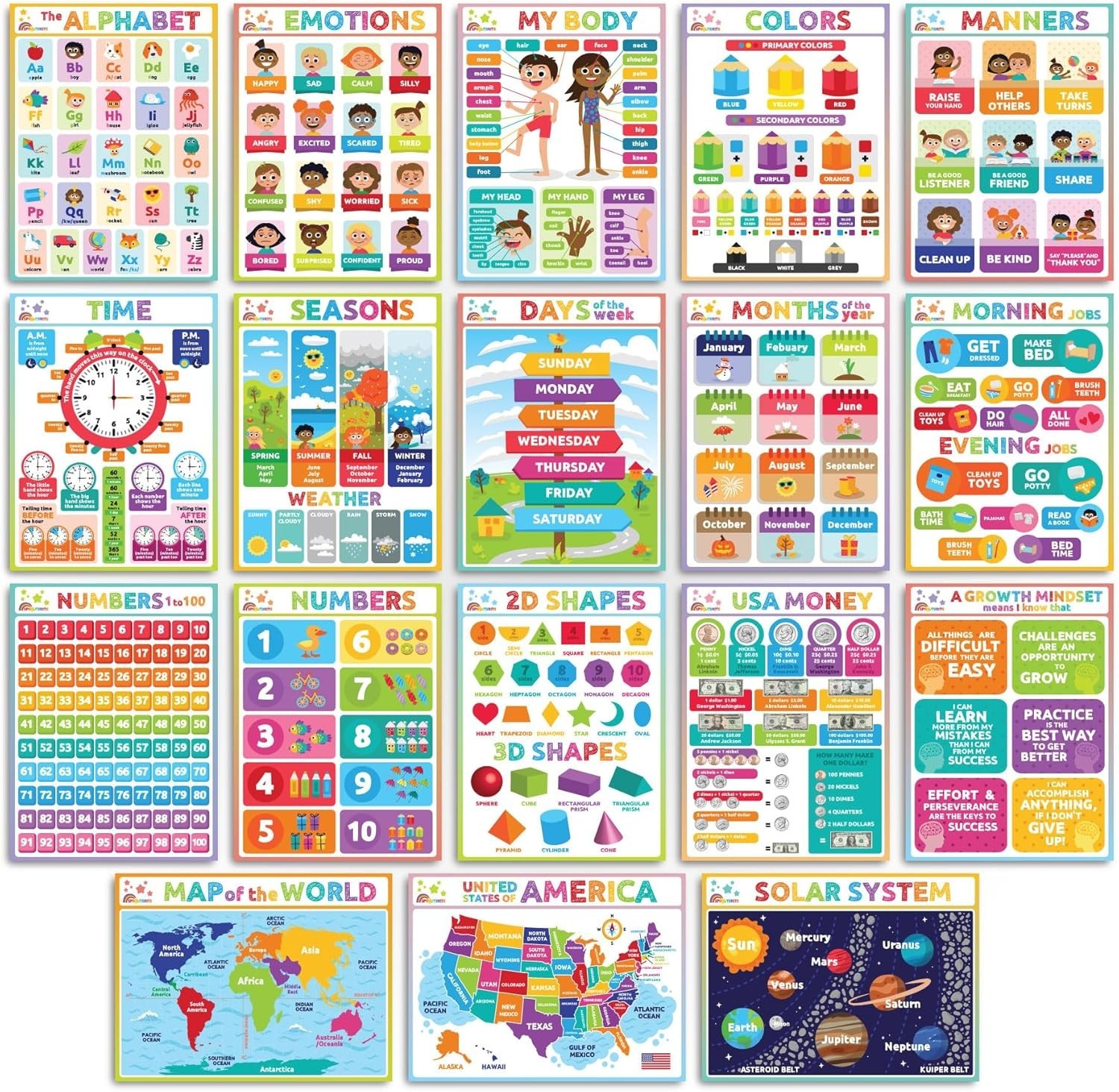 18 Educational Posters for Toddler Learning Vibrant ABCs Number Charts